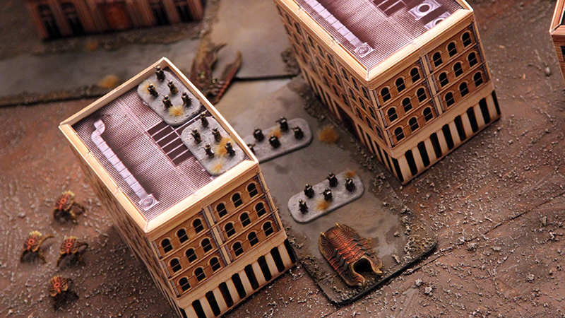 Concerning proper terrain, I feel somehow dragged to Primarchs philosophy of there can´t be ever enough of something (hopefully I interpreted this right ^^). Keeping this in mind I am happy to present you my new lot of scenery. Now I have three different sets of terrain, to set up either a city, an outpost or wasteland with Tiberiu... ehm green energy crystals of unknown origin. Enjoy the pics and help me to figure out what needs to be created next, ´cos there is never enough scenery/terrain on a gaming table ;)