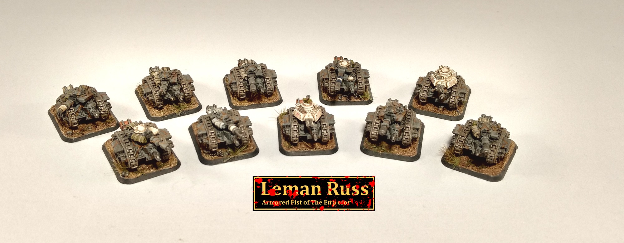 With all experienced officers KIA, tank commanders from the 965th Merkava Armored Regiment were introduced to lead the Azov host armor formations. The lance shown here consists of two Leman Russ Annihilators and a standard model Russ, all in the Ryza pattern (tactical note: Merkava regiments almost without exception field Mars pattern). The presence of the repainted white turrets indicates the tanks were crewed by Merkava soldiers from the 965th. Note the company commander observing through the top hatch operating with the tank "unbuttoned". While more dangerous for the commander, the improved visibility is tactically beneficial. A technique quickly adopted by the Hussars during the war.
