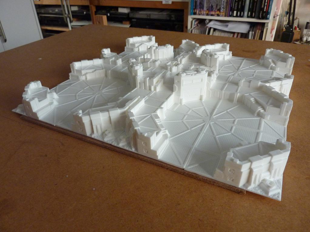 That means your fortress will be out of scale with pretty much everything else which is a bit unfortunate. The turrets that are dotted over the model are one fifth, so the model won't even scale properly with itself.