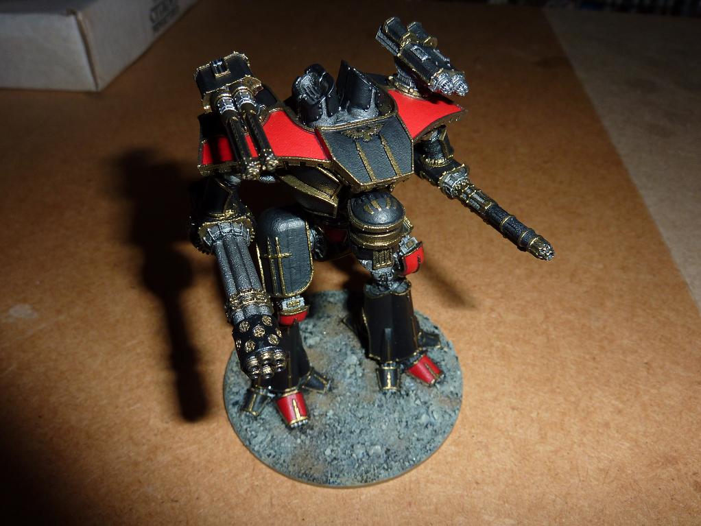 My only other gripes are the heads that come with the model none of which i'm happy with but hey i can put up with that. The head i chose is the most imperial looking of those on offer and at the moment it's only the pin that's holding the head on as i may choose to change it at a later date. Also would have liked the head unit to have an access tunnel conection like an imperial titan as the head is attached via a small ball and socket joint which does not look all that robust for battle and i can't see how the pilots are supposed to get in the head.