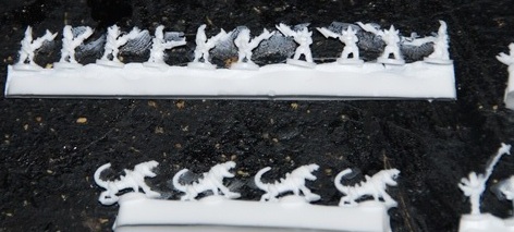 There are some things missing from the pieces. Namely the whips in the hands of the Wyches and Dracon character. The pieces are molded, however, so that a small piece of wire can be glued into the hand just as I had them.