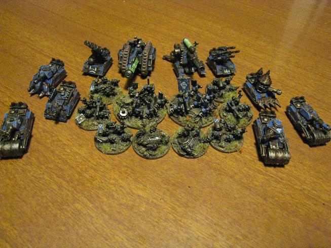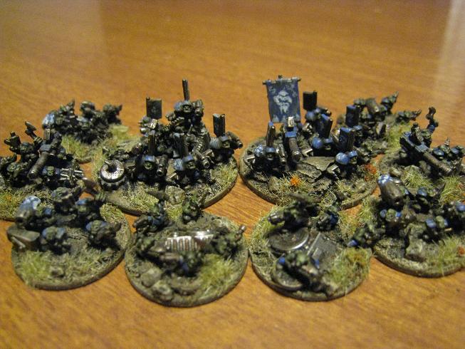 I didn't realise I could combine my shokk attack and artillery pieces too! I have about 16 stands of those, plus all the heavy weapon guys. I think I'll mostly give the artillery and shokk attack to the Bad Moonz (since they can afford Ork tech) and the heavy weapon stands to the DeathSkulls(cos they stole em). I'm converting half the big shootas to Lascannon and other cobbled together heavy weapons. I'm also hoping to see if I can build some pulsa rockets, or convert some of the plastic big gunz I have. So that should be a nice mix.