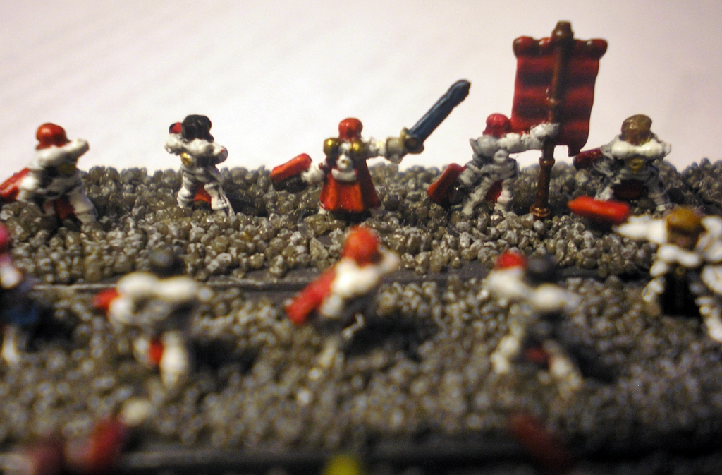 I have most of the infantry units (all of them Onslaught Miniatures) - the IG units will be Mordian Iron Guards (I'm still waiting for those Baccus early WW1 British Pals to arrive.. ), and the Chappel will be a modified Dystopian Wars french landship (hey, they already have the french lily sculpted on them :D )