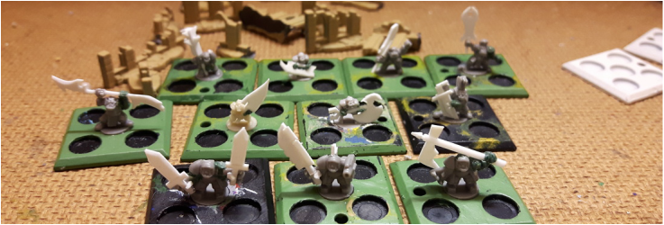 I will eventually port these to long rectangle stands and pad it out a bit with Ork Boyz with guns.