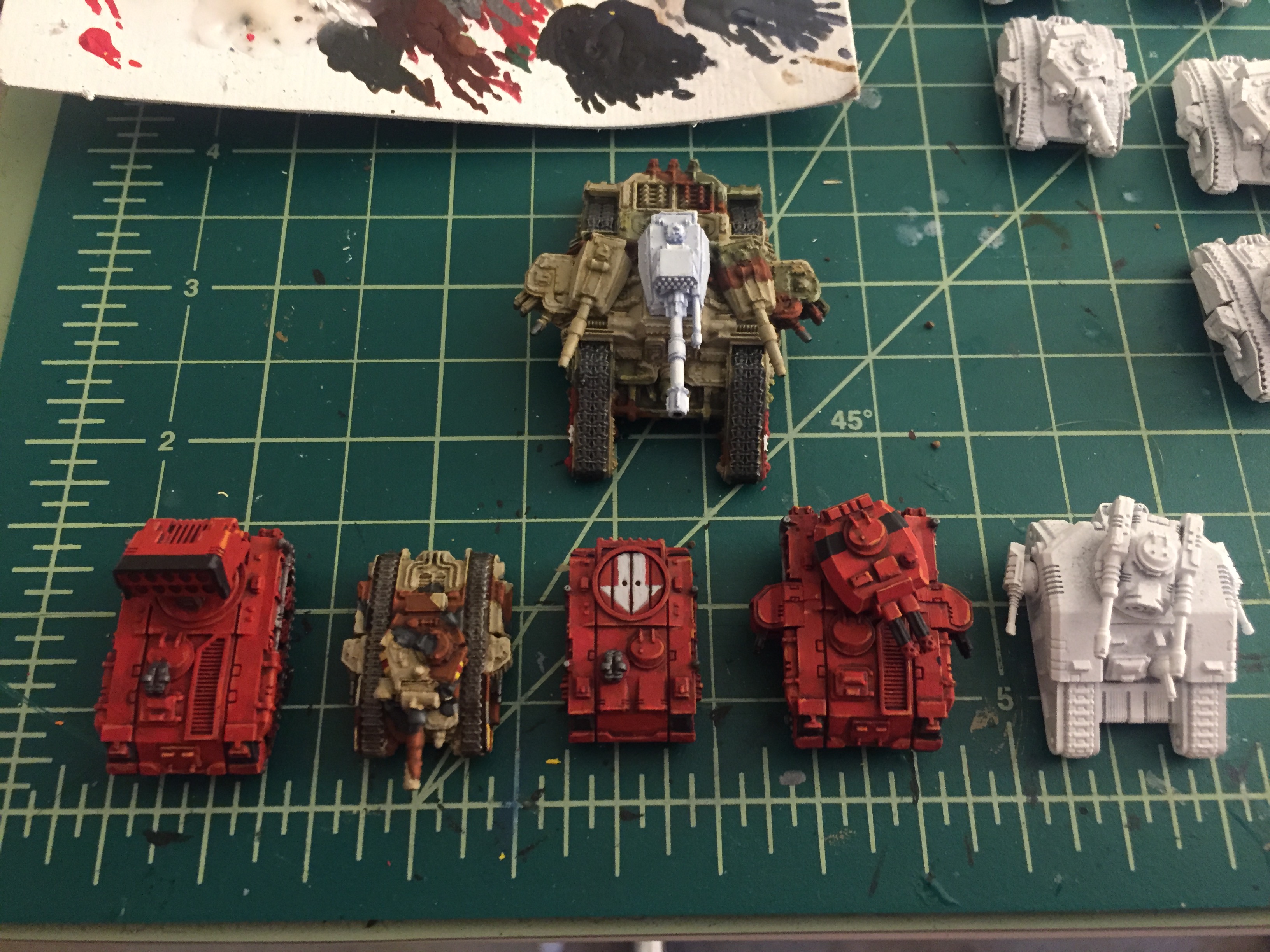 They're not as sharp in their casting as Vanguard but are still really lovely little figures. They have a great "Imperial" like flavor, have some useful little features like cast-in recesses for magnets under the turrets, and make a great base for a Leman Russ company. Forgive the sloppy close-up, I'm speed painting these for visibility at table distance. They also have turret options that are useful for denoting Command tanks and special variants, etc.