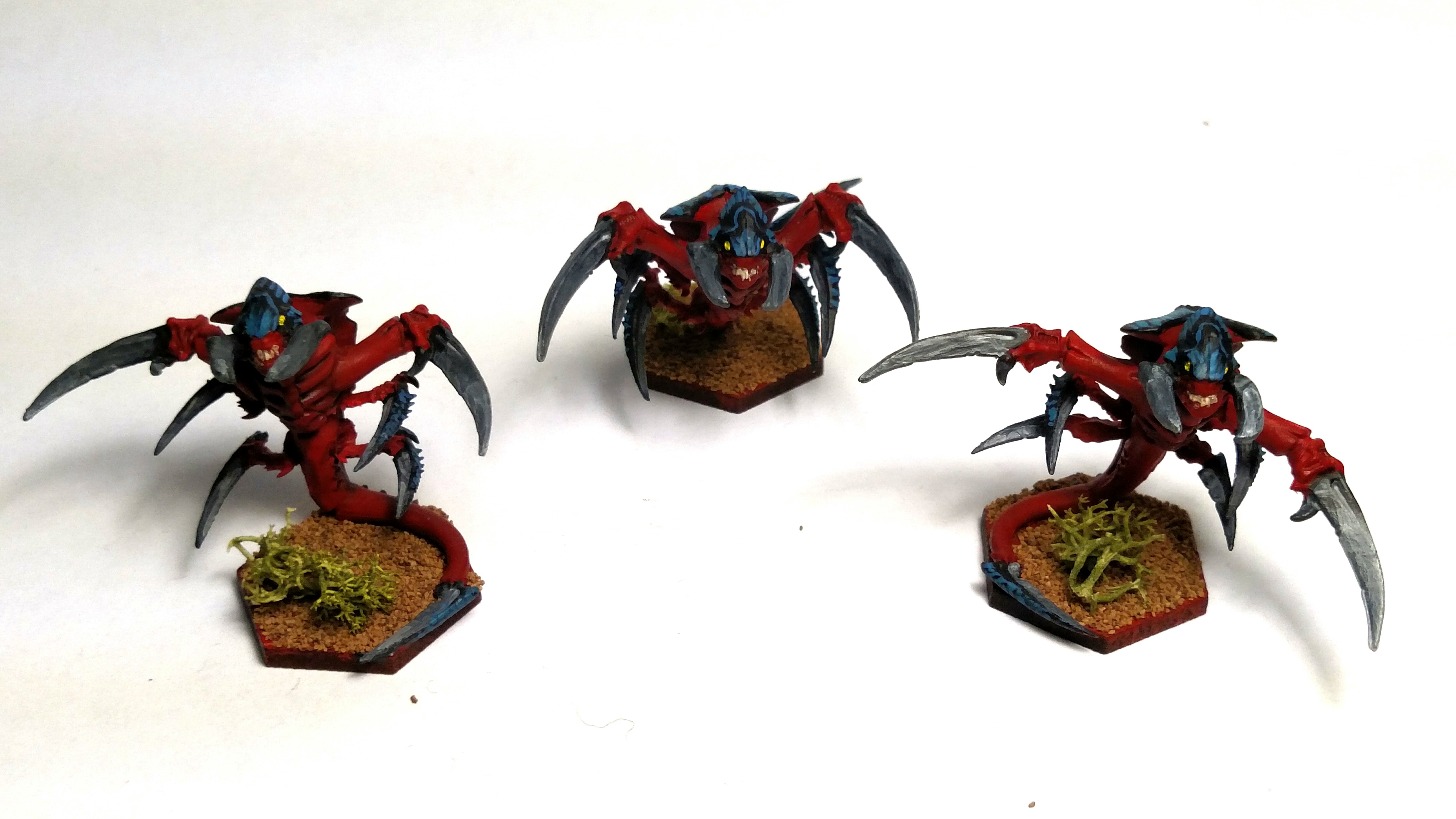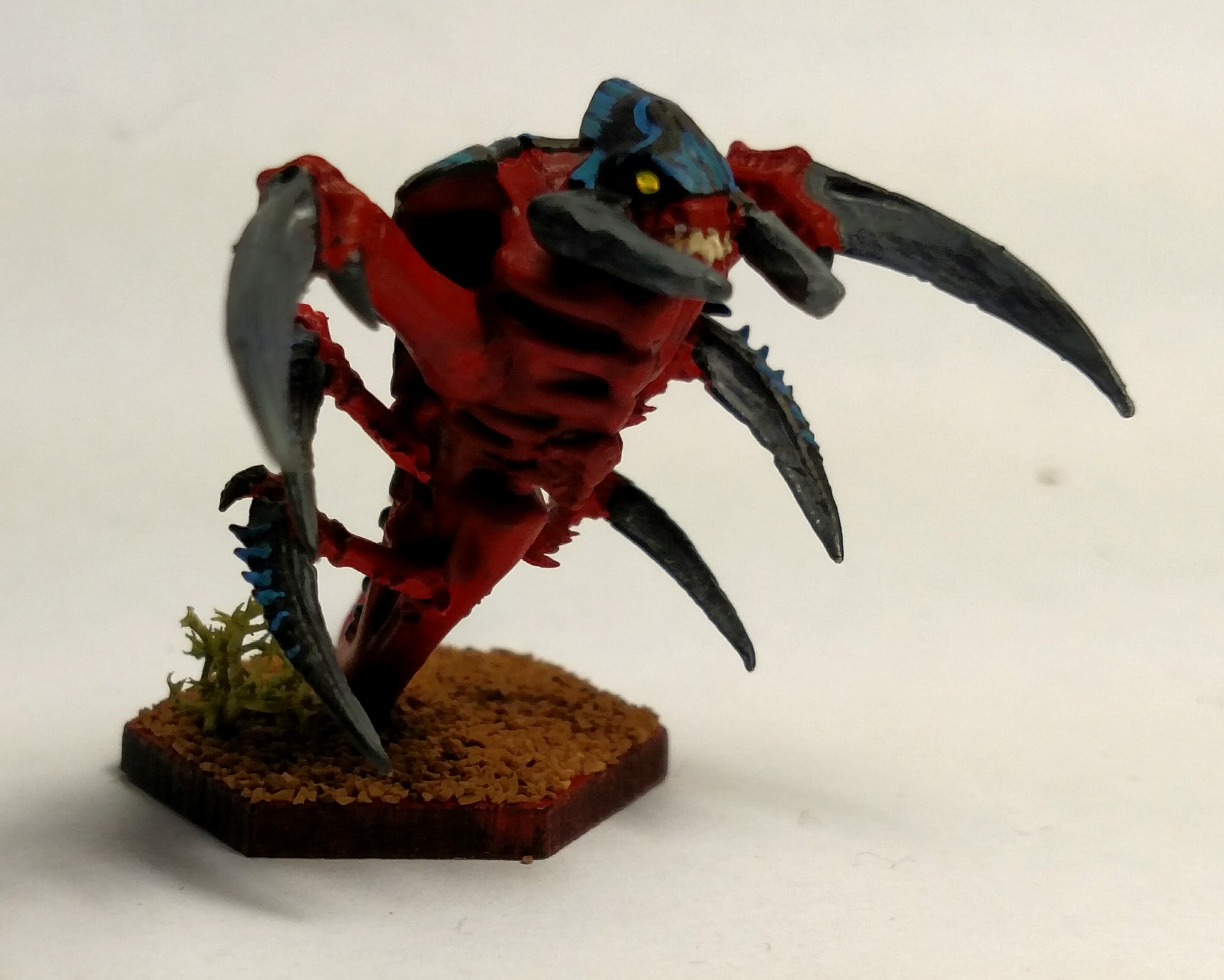 I really wanted to improve the blue markings so I extended them and made them a bit thinner. I was also much happier with the shading on the claws for the Trygons compared to the Dom. I held off putting on a clear coat because I noticed the Dom looked a bit shiney. I'm using Testors Dullcoat because I wanted to avoid that shine. Hoping to figure out that issue and fix it. C&C welcome!