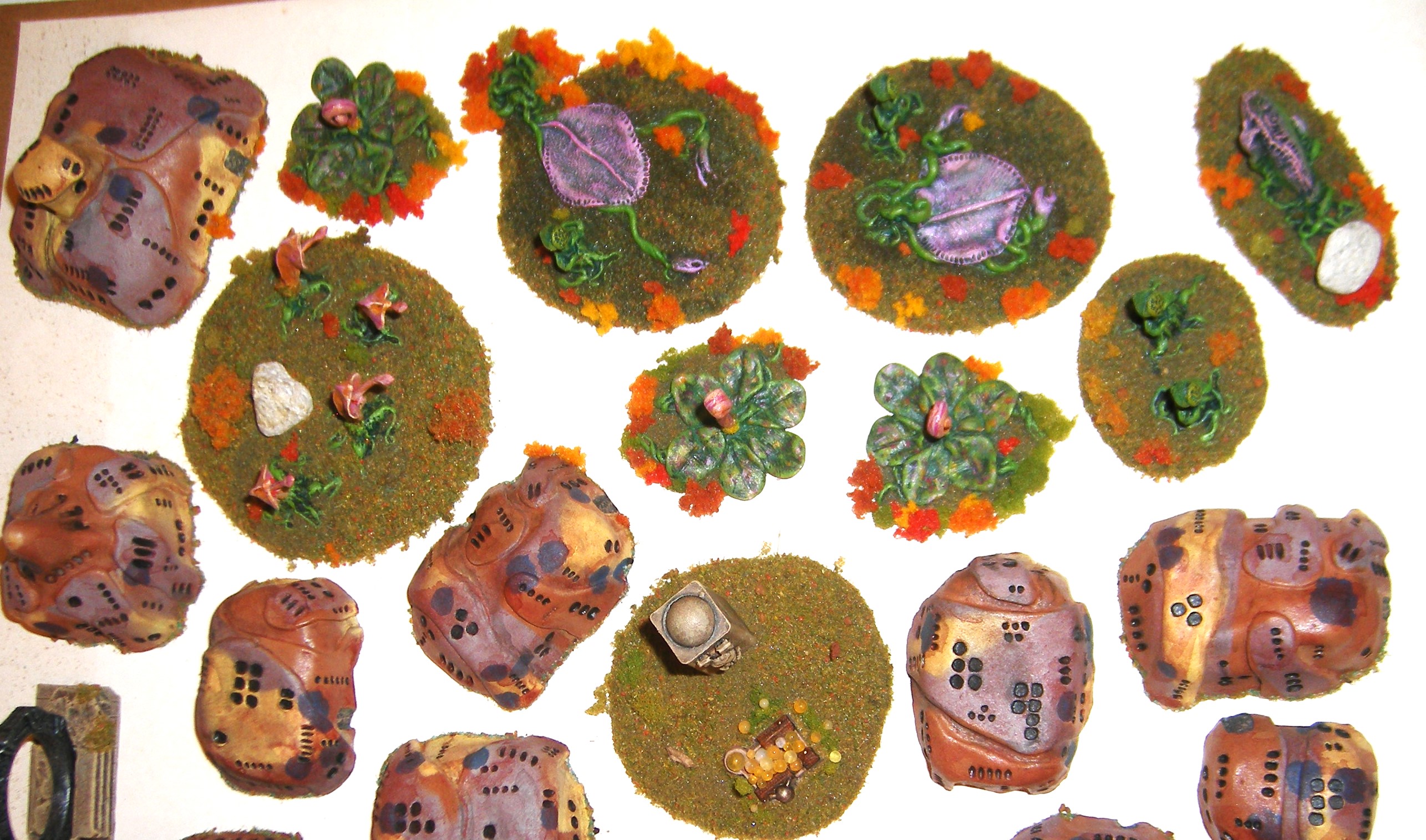 A little alien village on the other end of a Stargate. Beware the flora ... IIRC the structures were SHQ ? The flora ? Stargate was a key chain on eBay. 1/2 eaten Ork - GW ...