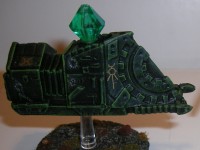 I use a 40k Destroyer with the Necron body turned around to face over the hull.