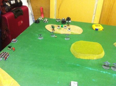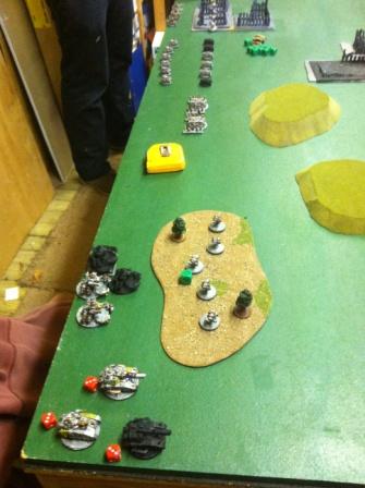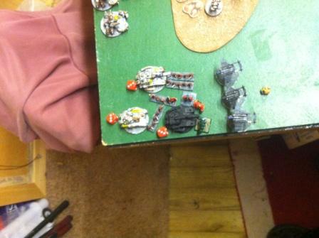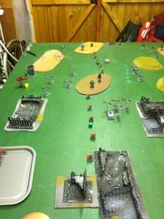 I recon I made several mistakes, firstly we played sides rather than corners. This would have force the IW to bunch up more. Then I placed the spacecraft template too far away from my main drop (only 20cm, but too much with where the IW garrisoned). Finally on the initial errors, I dropped two formations forward, the Death Company & an Assault formation.