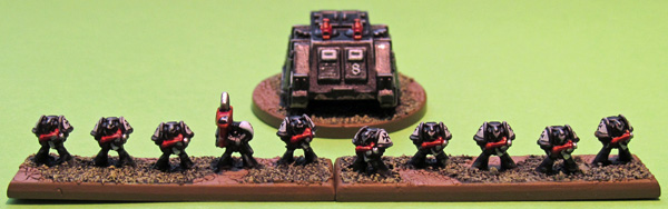 People would probably run BTs more around assault with less shooting than a normal SM army. The list has no Devestators or Librarians and other restrictions on shooty units. Black Templars also unusually train their Scouts (or Neophytes) alongside regular marines rather than in a separate formation. This removes the option of boosting activation numbers with cheap Scout formations but allows for larger, tougher formations to be fielded (5 bikes plus 3 neophyte bikers is a better Thunderhawk load-out than 5 bikes with 3 left-over, unable to be used spaces). The options you suggest could be good, but the list is still flexible and could potentially run well as a pure drop army, an air based army or a ground based/tank army or some combination of the three. Sticking a character (probably a Chaplain) with the Assault Terminators would be a good choice to make best use of their 2+ CC. Stormtalons are slightly better than Thunderbolts at killing pure AP formations but worse against all other targets. Their main advantage is the extra reliability of the 1+ initiative. Thunderhawk Transporters allow for all drop armies with vehicle support unlike in the codex list, but I haven't tested this yet (I only relatively recently took over the list and need to get more games in with it).