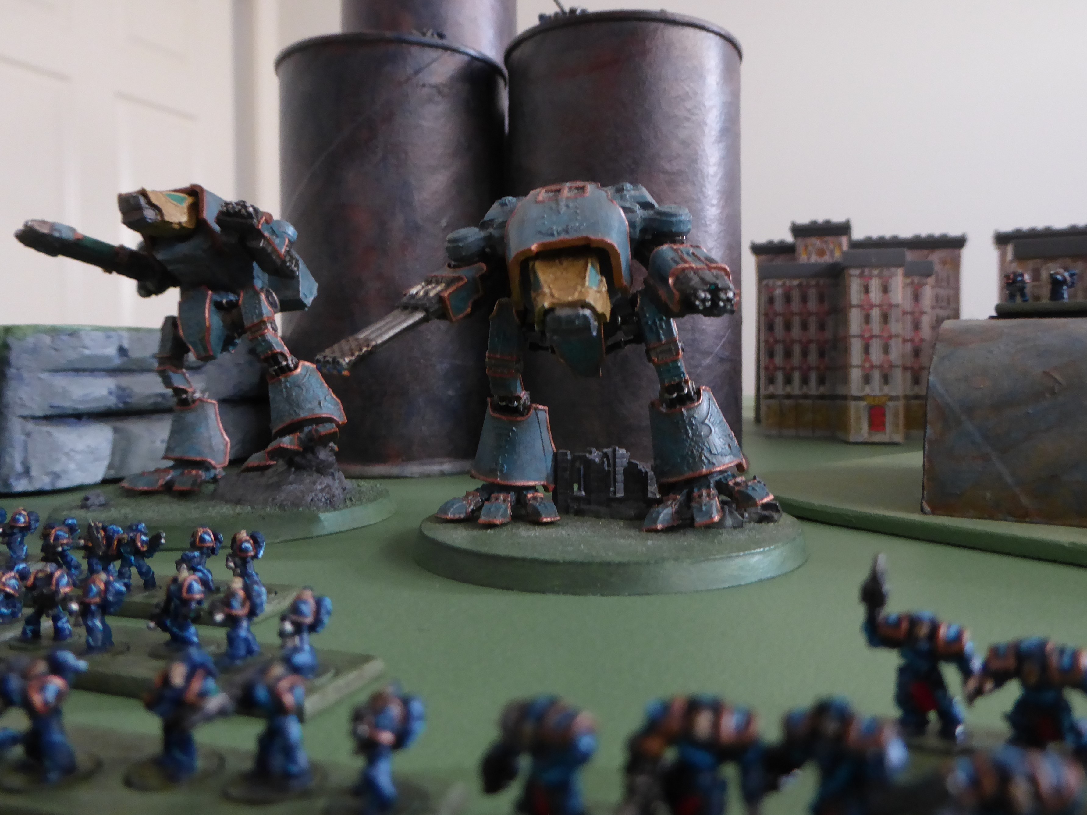 The Reaver Titan did fairly well to dominate its part of the battlefield, taking an objective, hitting the EC tank formation and confined the Questor Titan to stay behind buildings in the urban area.