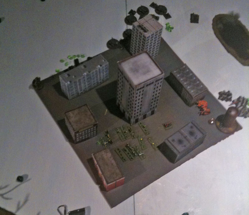 The Infantry in the suburb engage the exposed orks. Failing miserably killing not a single ork. Loosing three themself and break.