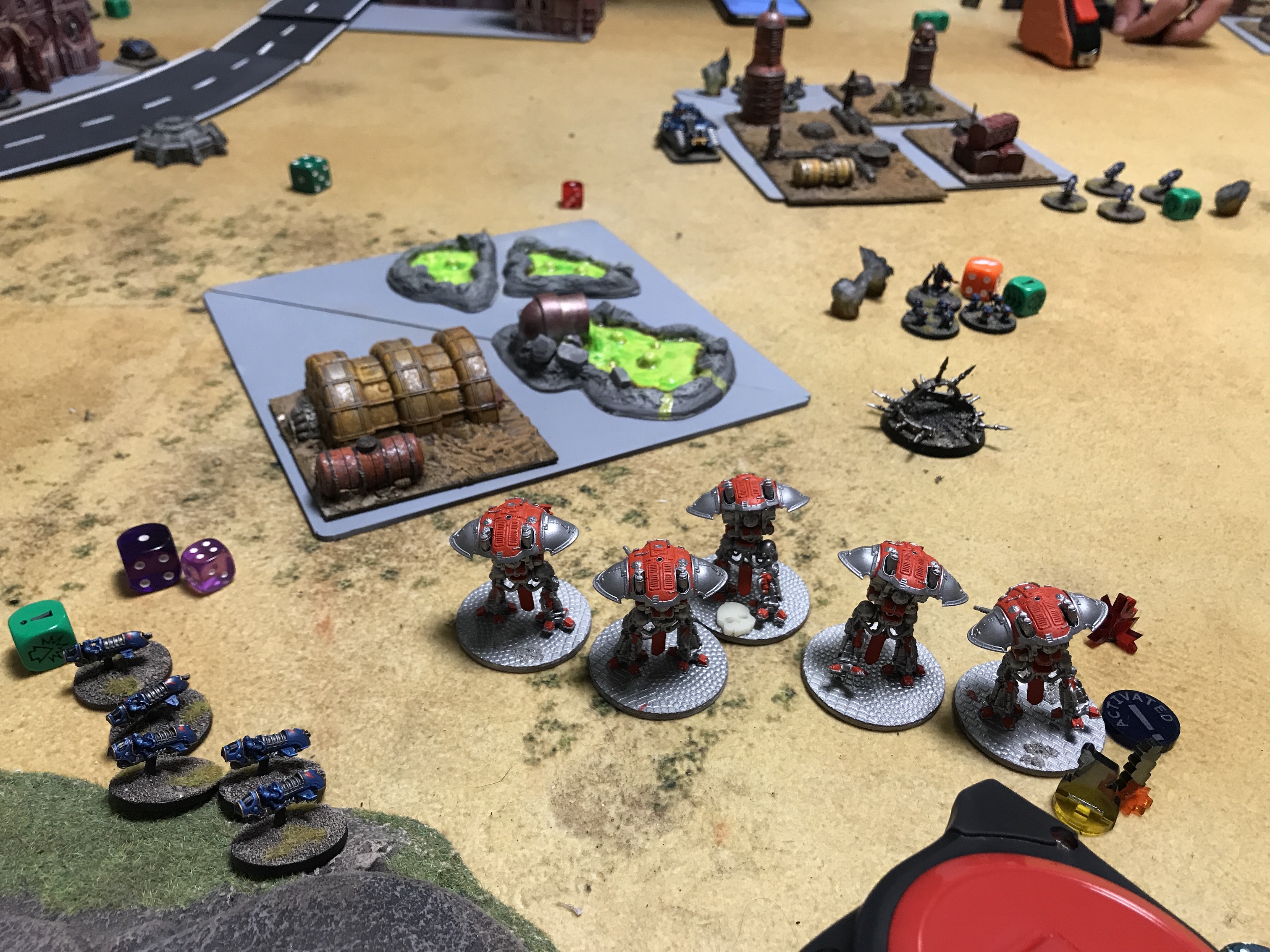 We decided the green toxic waste ponds terrain would count as marsh but also be dangerous terrain. I garisoned a couple of formations in the thing at the start, a little in from the edge so the marines would have to take dangerous terrain if they moved in.