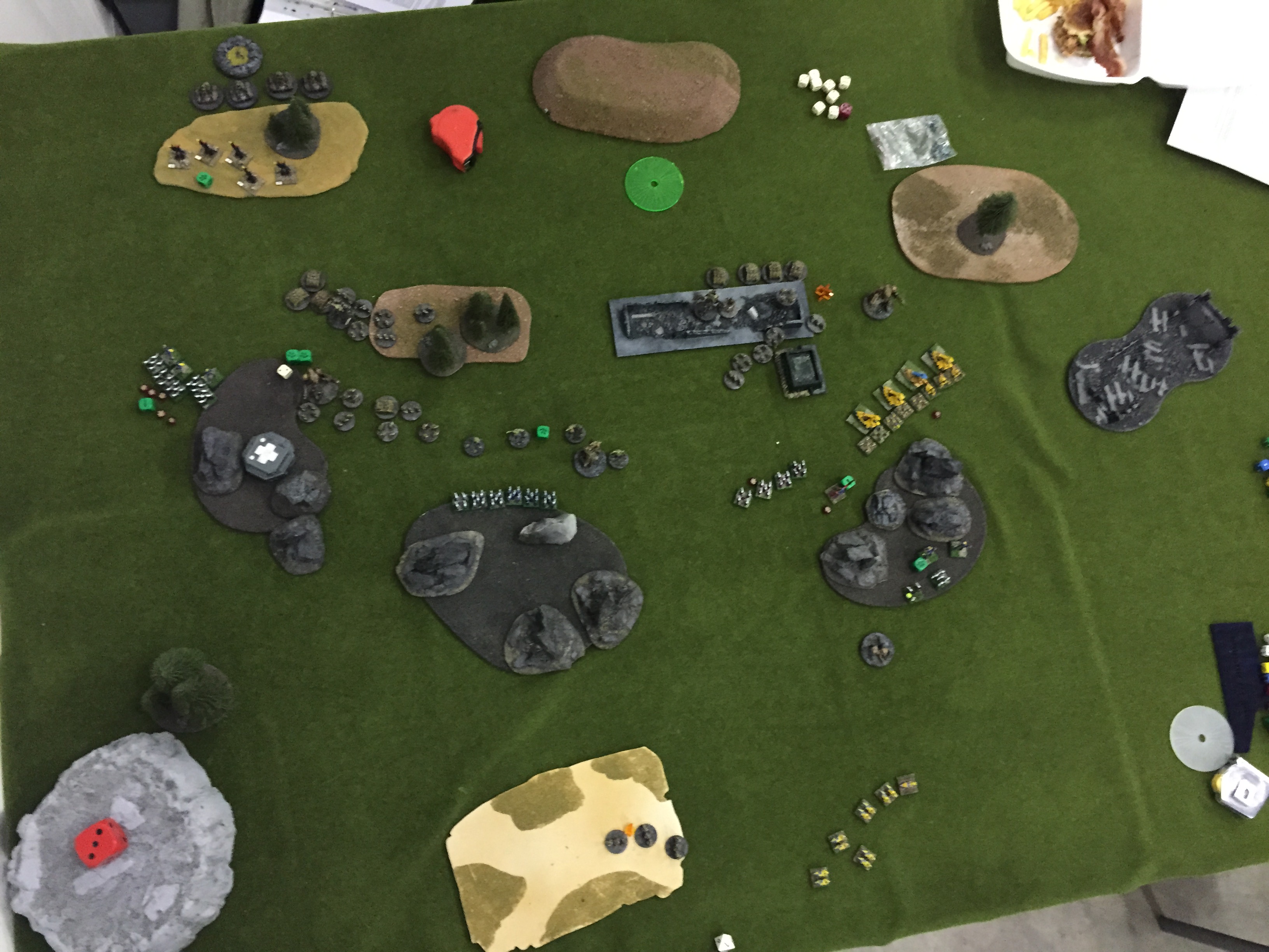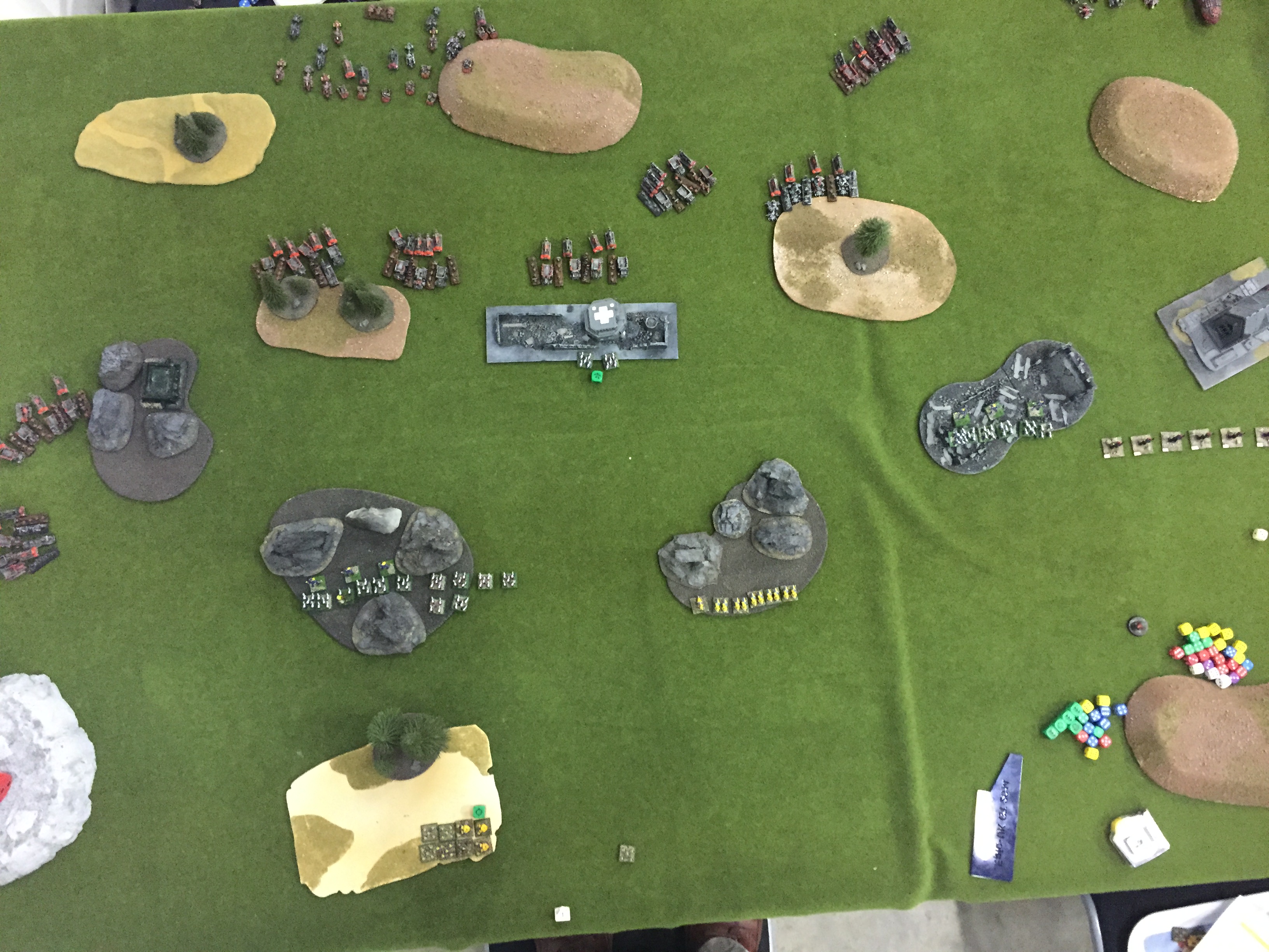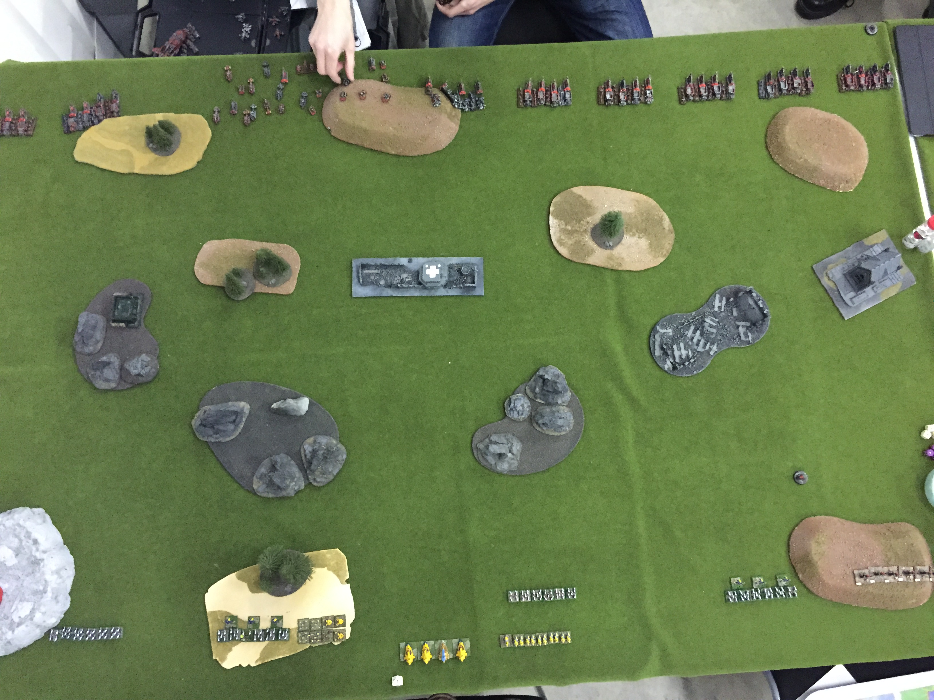 O- KOS 1 double forward to the centre of the table in engage range of the WG in WS but fire at the broken WG formation again in cross fire with OW and wiped the formation out.