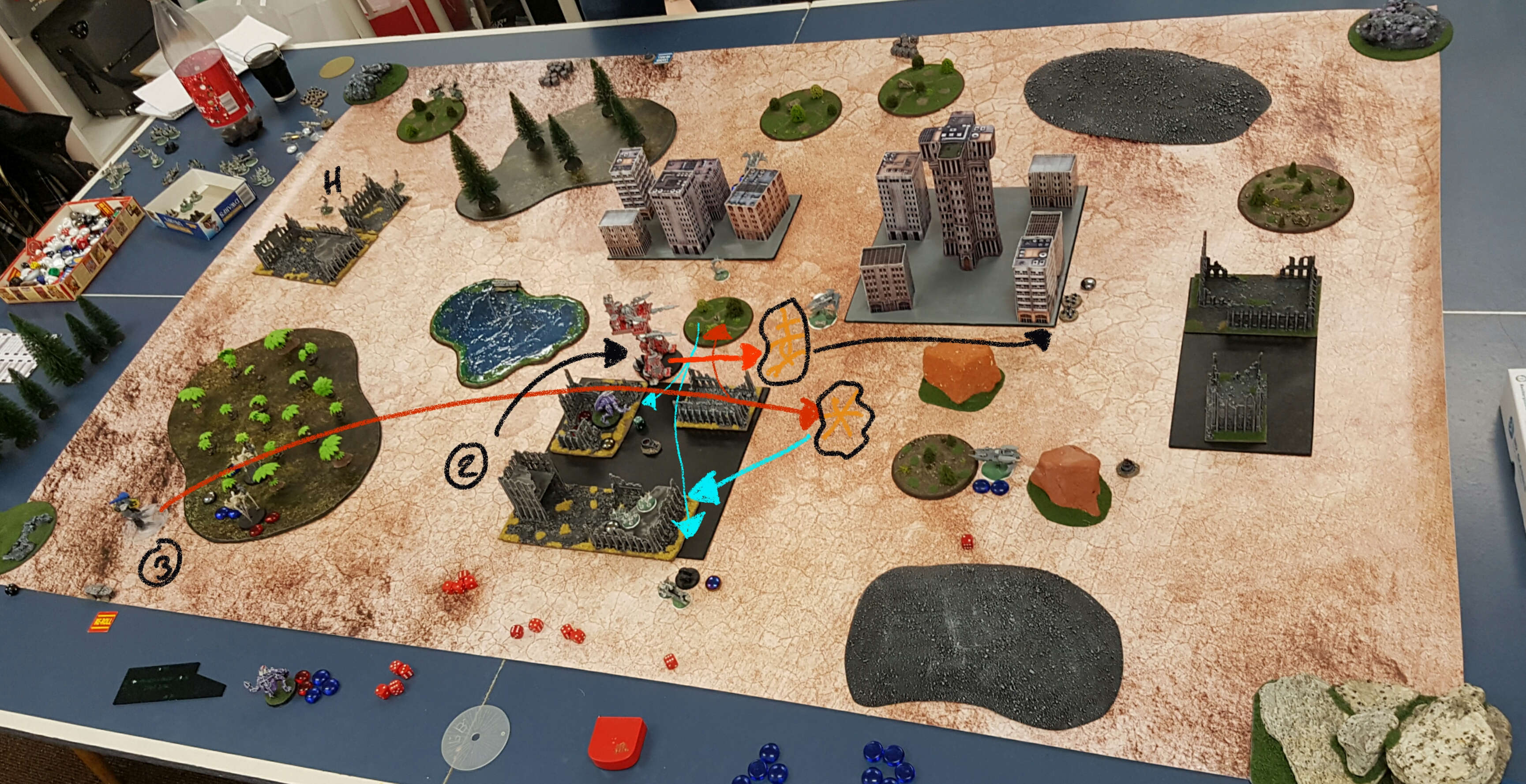 The rest of the turn is spent by the Dark Eldar trying to break the Reviler, but there's simply not enough formations close by that make they activation rolls to put 6 blast markers on it. The Blitz remains out of reach.