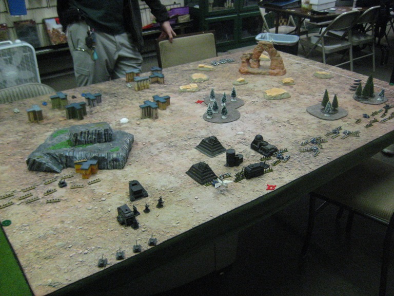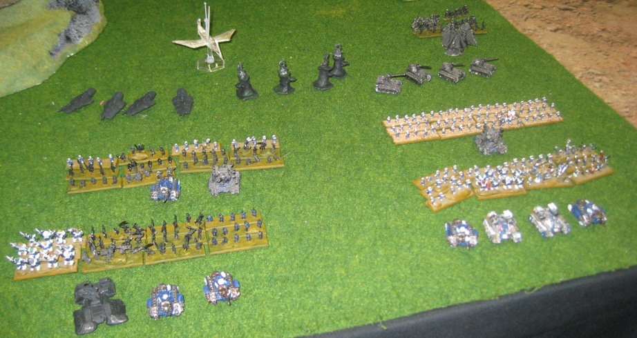 New poster, but have played sporadically for 6 or so years as the Lost and the Damned. Recently have been playing a lot more because I have gotten one of my fellow grad students completely and utterly hooked on it. Unfortunately for me, he has put together a rather mean Eldar list as you will see. Scenario is 3k, standard tourney rules.