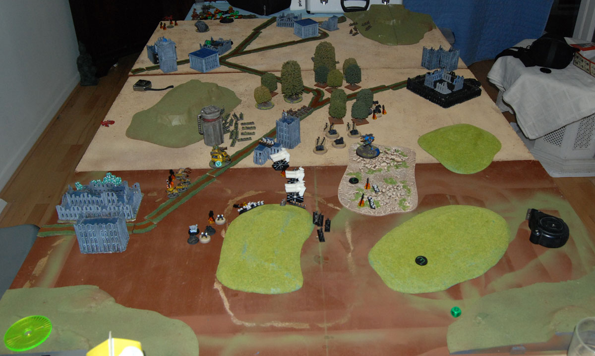 I almost managed to push the game to a turn 4 by engaging the Warhound with my Commandos in a firefight, but round 1 was a draw and round 2 was won by the Warhound by 1 point.