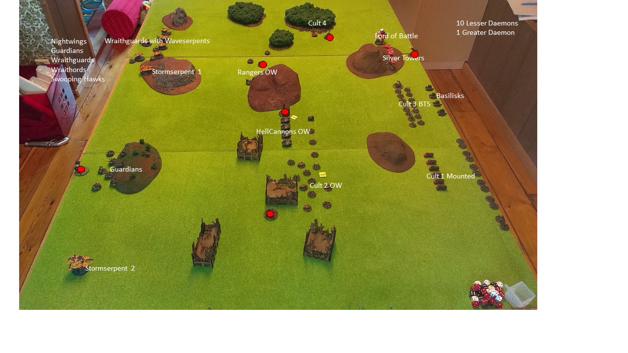 Wraithguards and Wraithlords is really tough. The Cult had very little MW so the soaked up a lot of damage. Wraithlords is really difficult to use since they want to get into CC but only moves 15cm. Waveserpents and other skimmers is good to have if you face CC monsters.