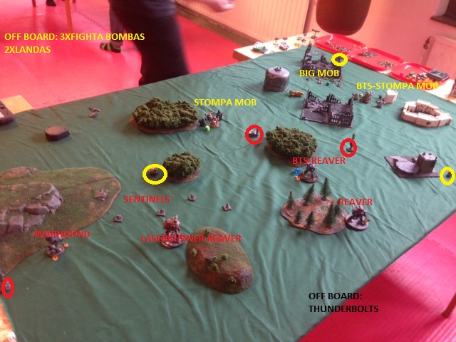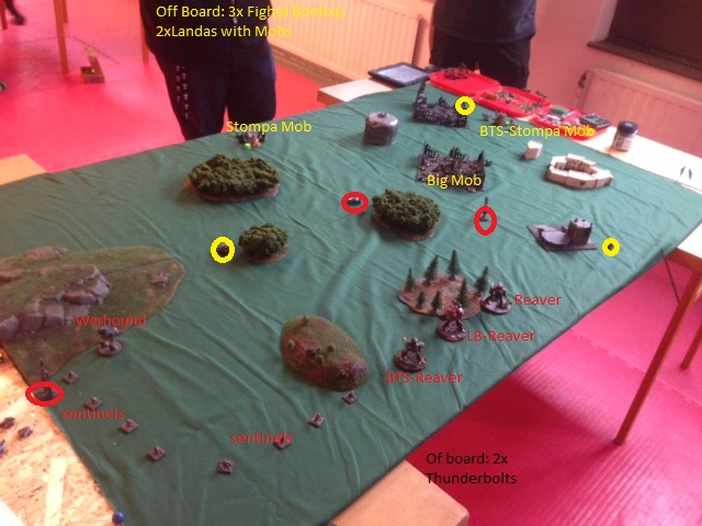 O: Landa with Mob engages BTS-Reaver. Looses 3 grots and 2 boyz but wins the combat.