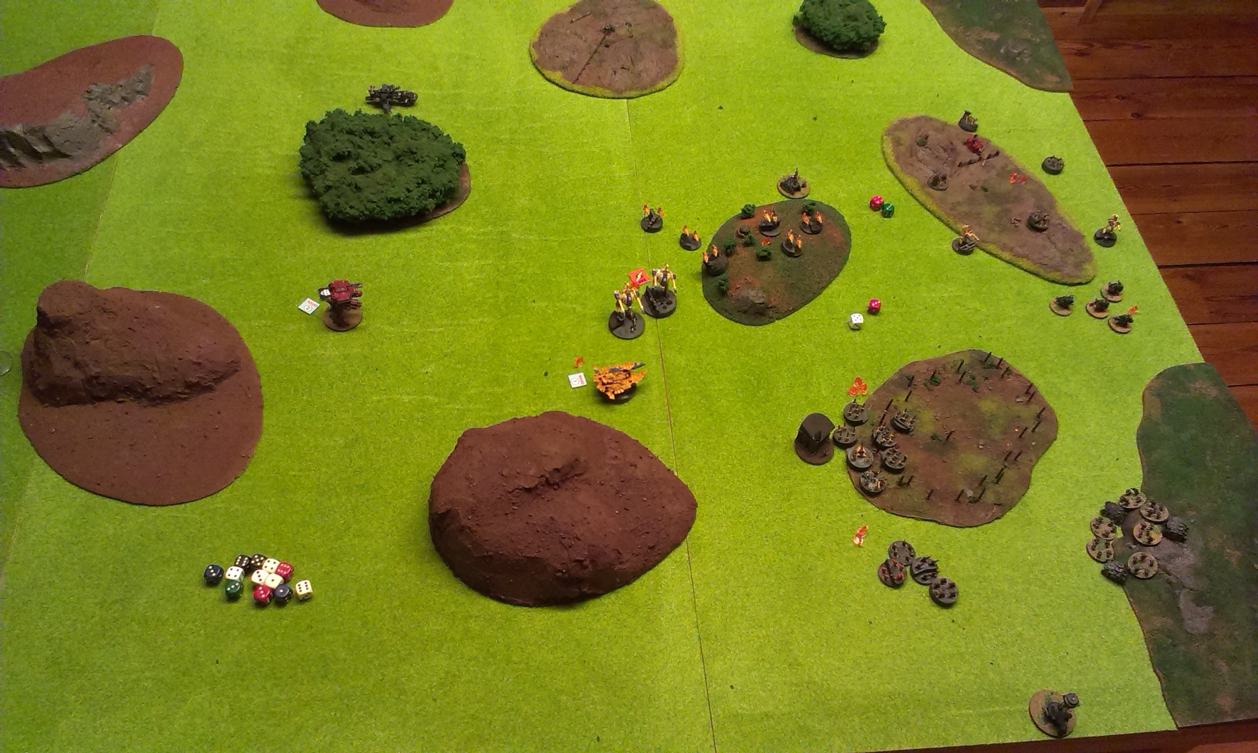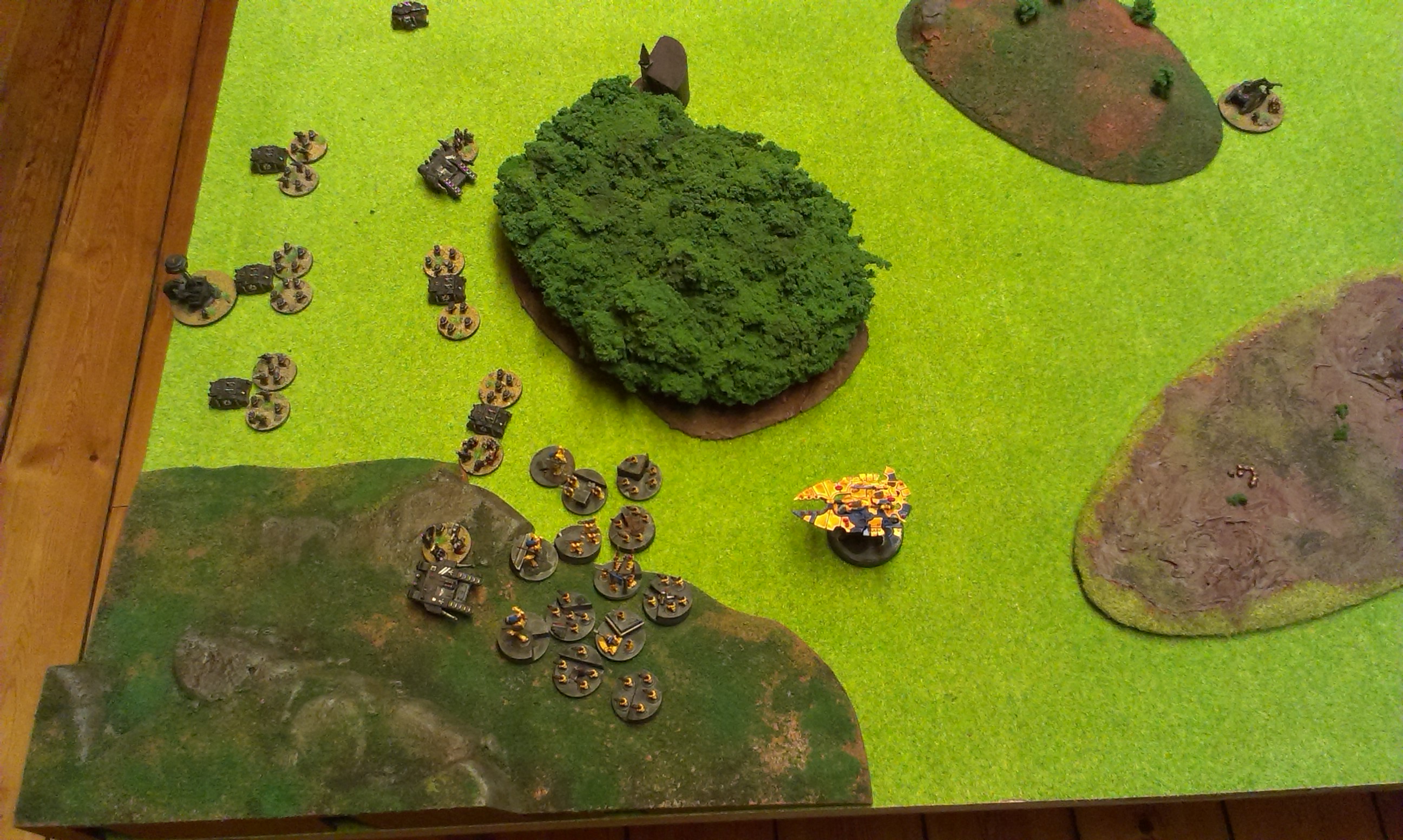 End of turn two. Things looking hopeless. Everything Rallies except the Warhound who takes off towards the Blitz!