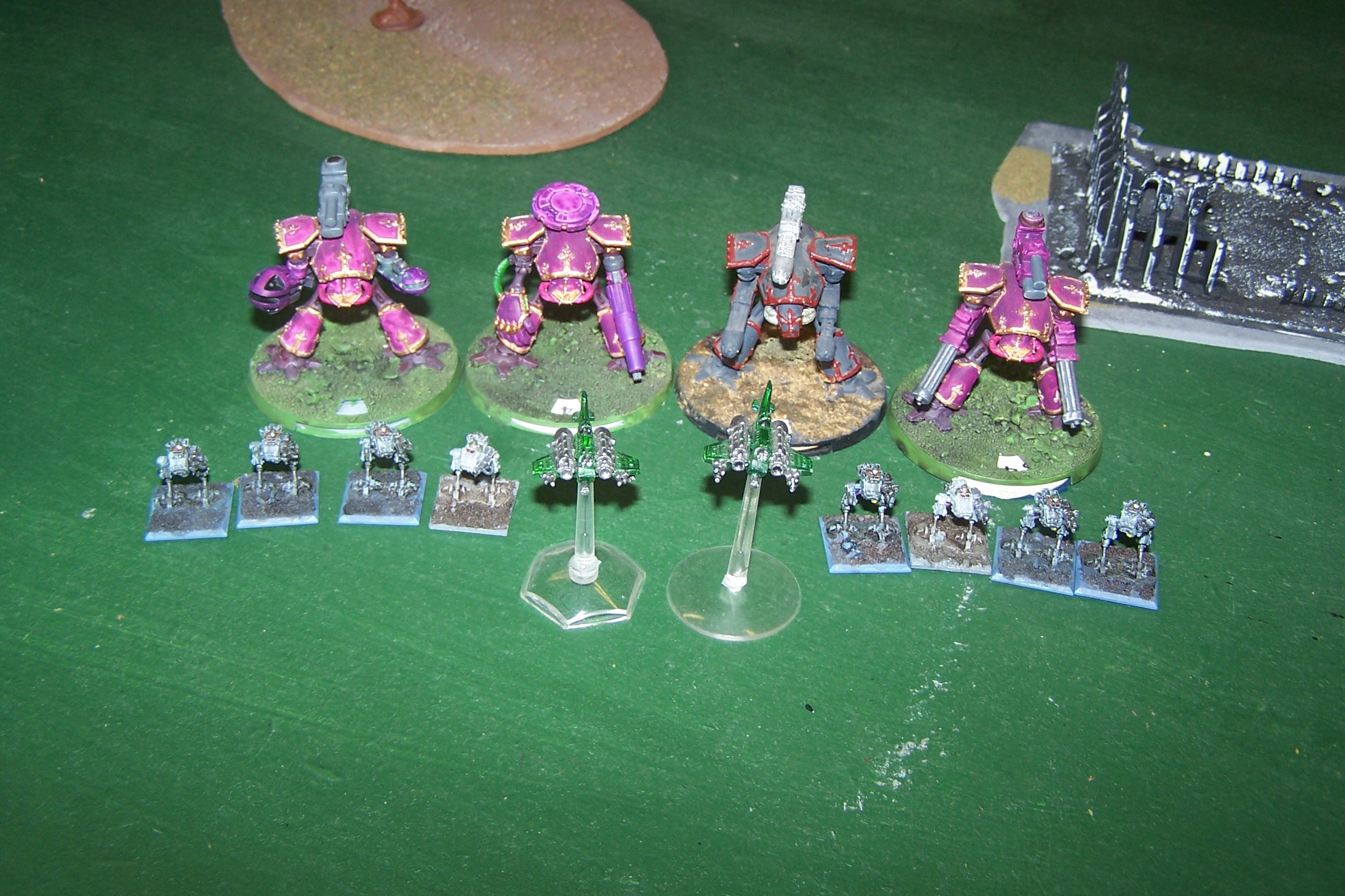 AMTL – Reaver 4 doubles into the ruins to see the Vessel of Pain (2) and firing the Gatling Blasters hitting twice and causing two wounds destroying the war engine.