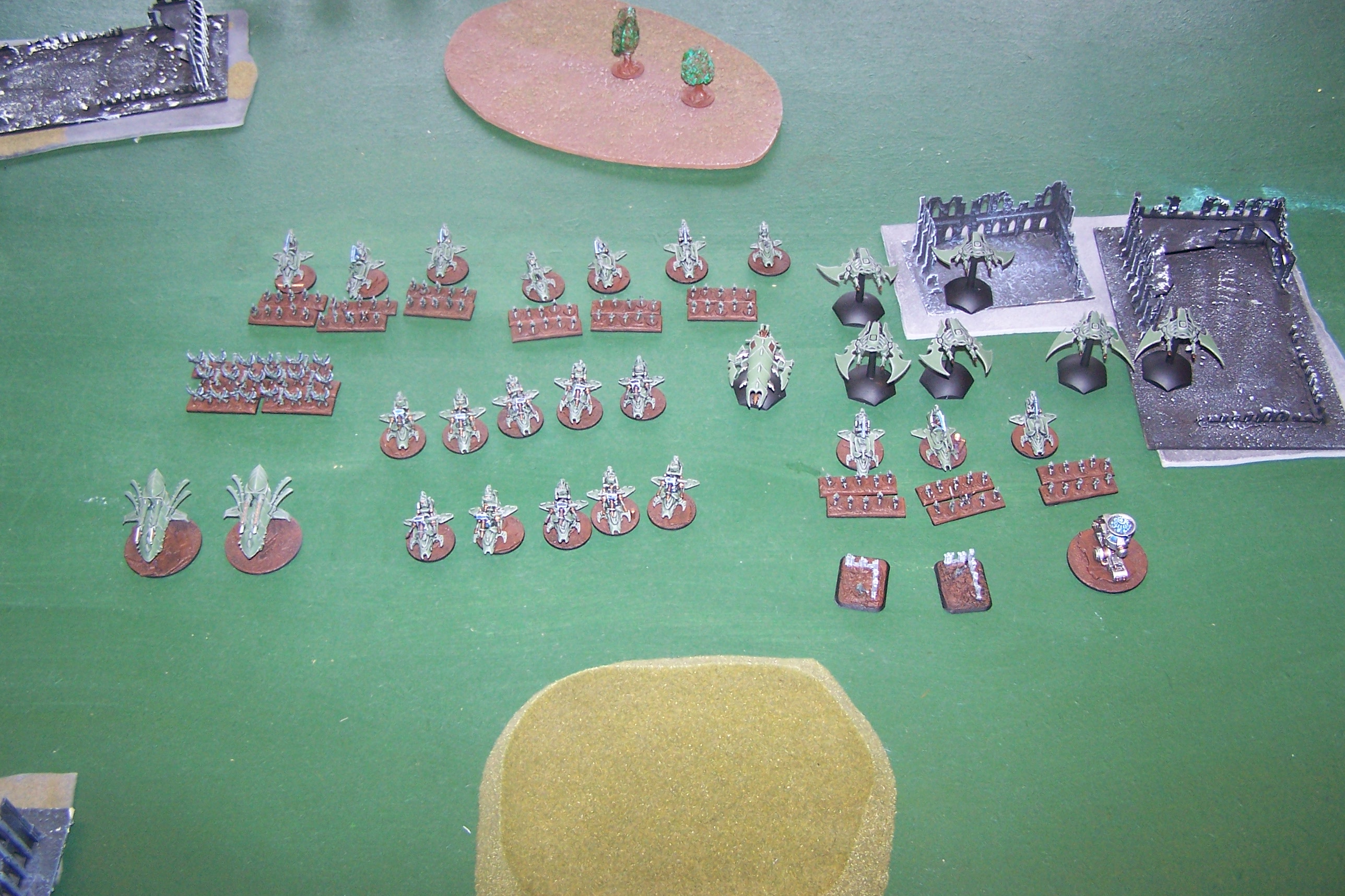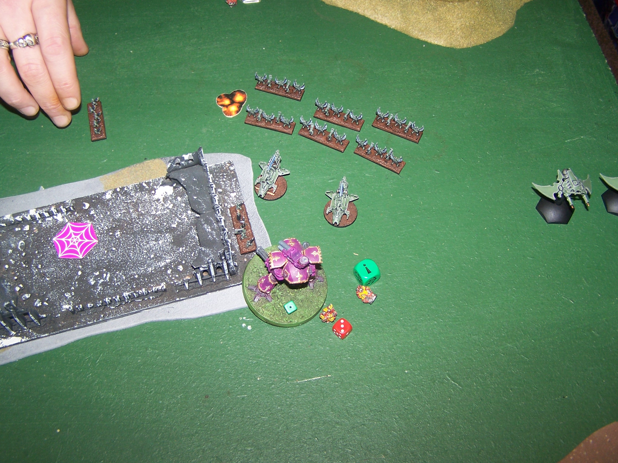 DE - Razorwings 2 ground attack sentinels 2 in the right flank woods killing 1 Sentinel and placing 2 BM