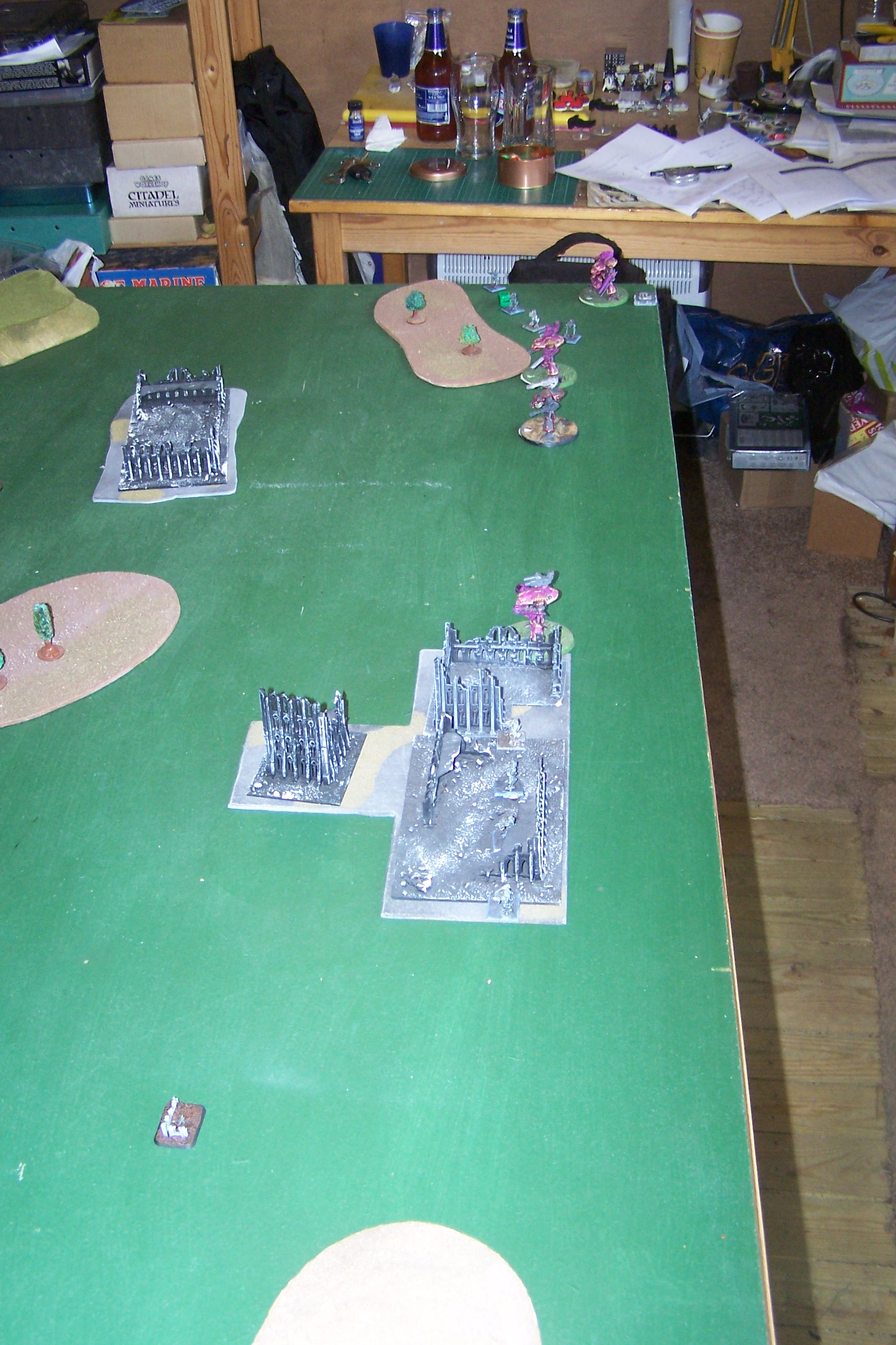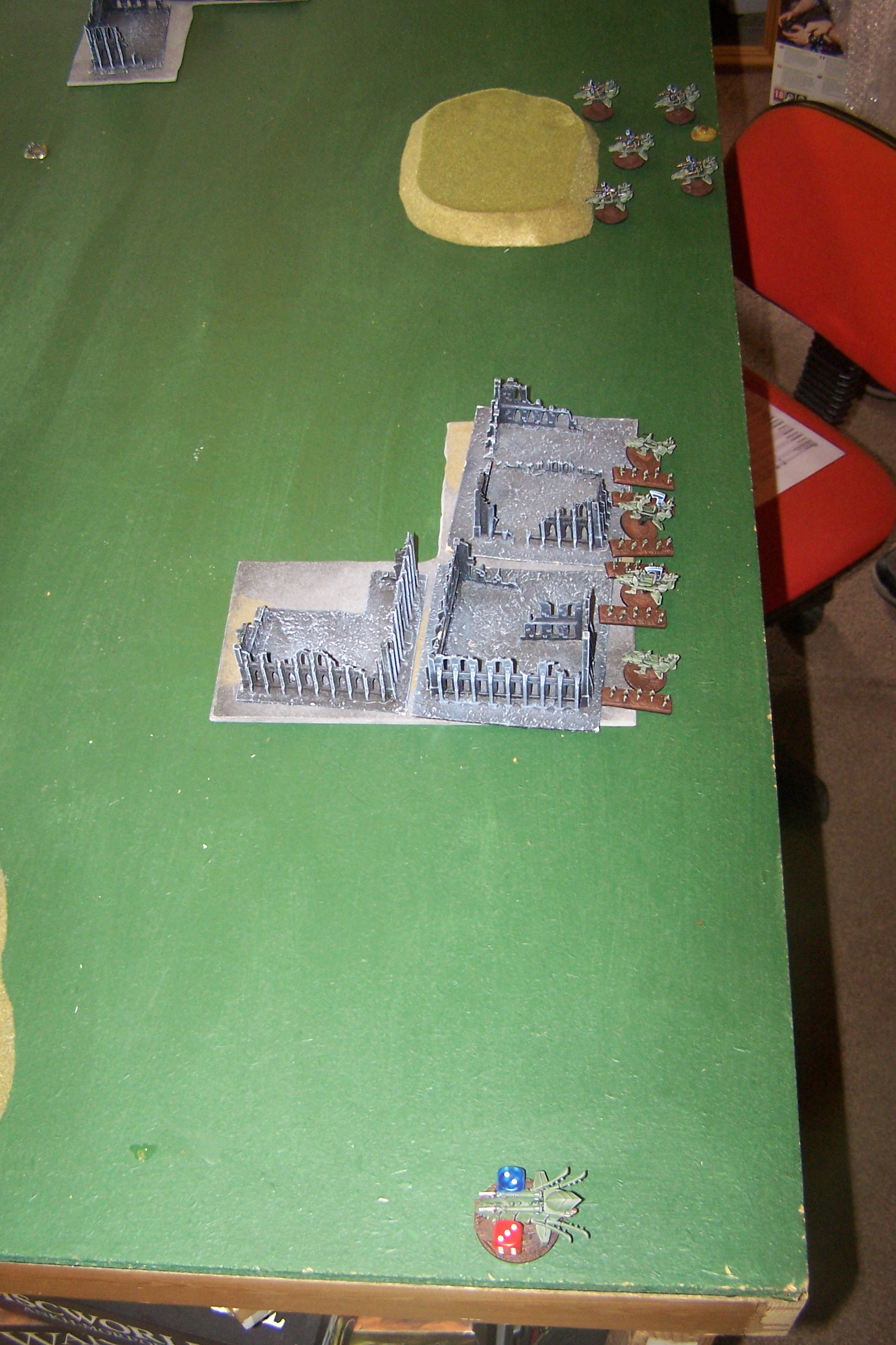 The Reaver suffers 3 wounds but still manages to win the combat (the Incubi failed to bring any armour). Both formations break with the Archon retreating back to the ruins in the Dark Eldar deployment zone & the Reaver falling back to the AMTL deployment zone.