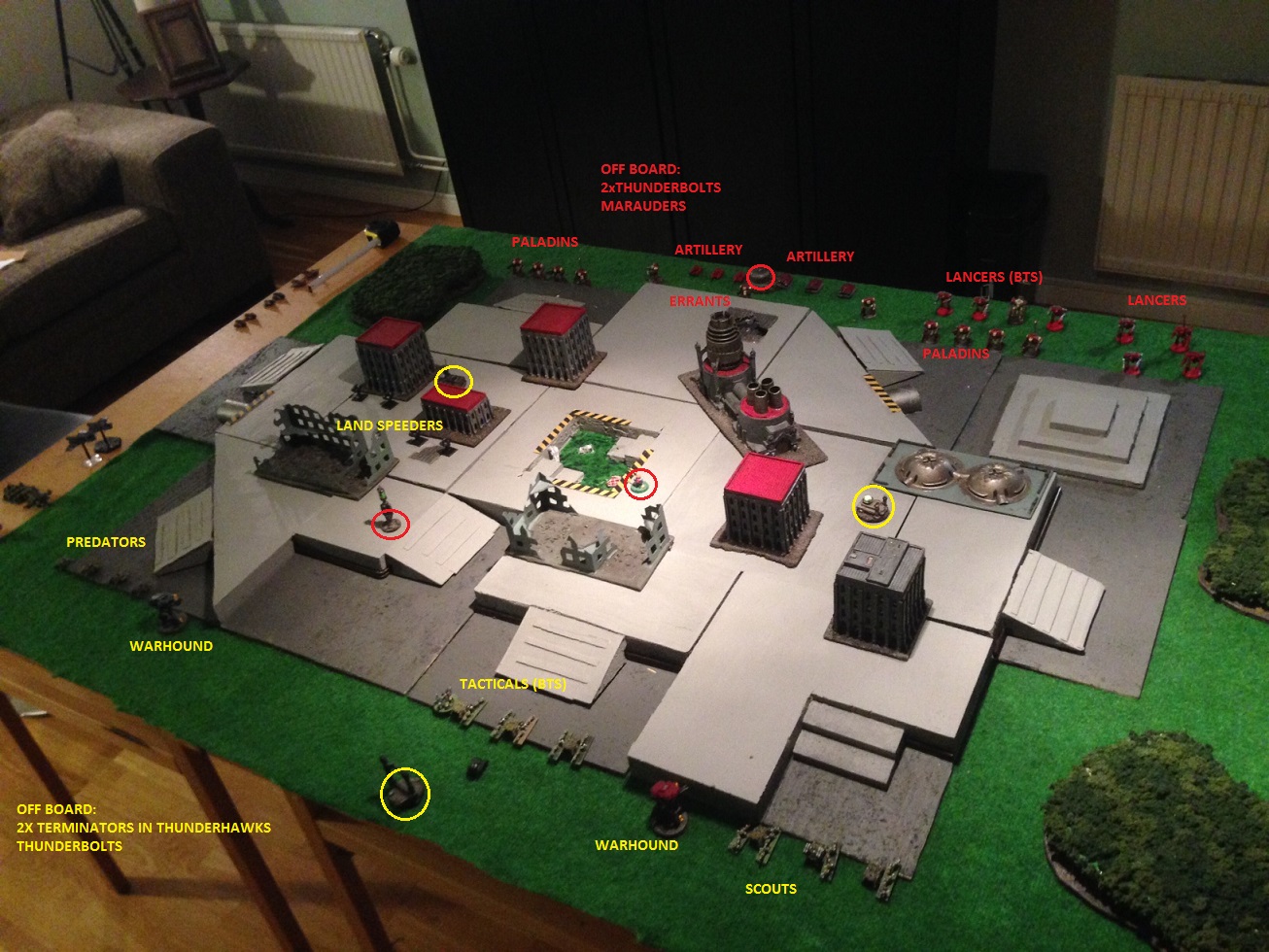 Haven't played any armies made up out of any non-approved lists in a while. But i felt it was time to take the knights out for a spin. The battle was going to be fought over an industrial area which was built up using my modular tiles.