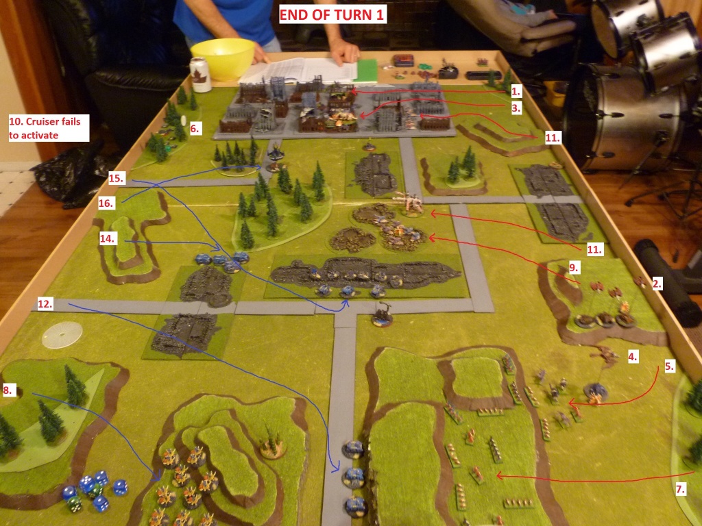 Hello All. Just though I would post what I could remember for the two turns we managed to play.