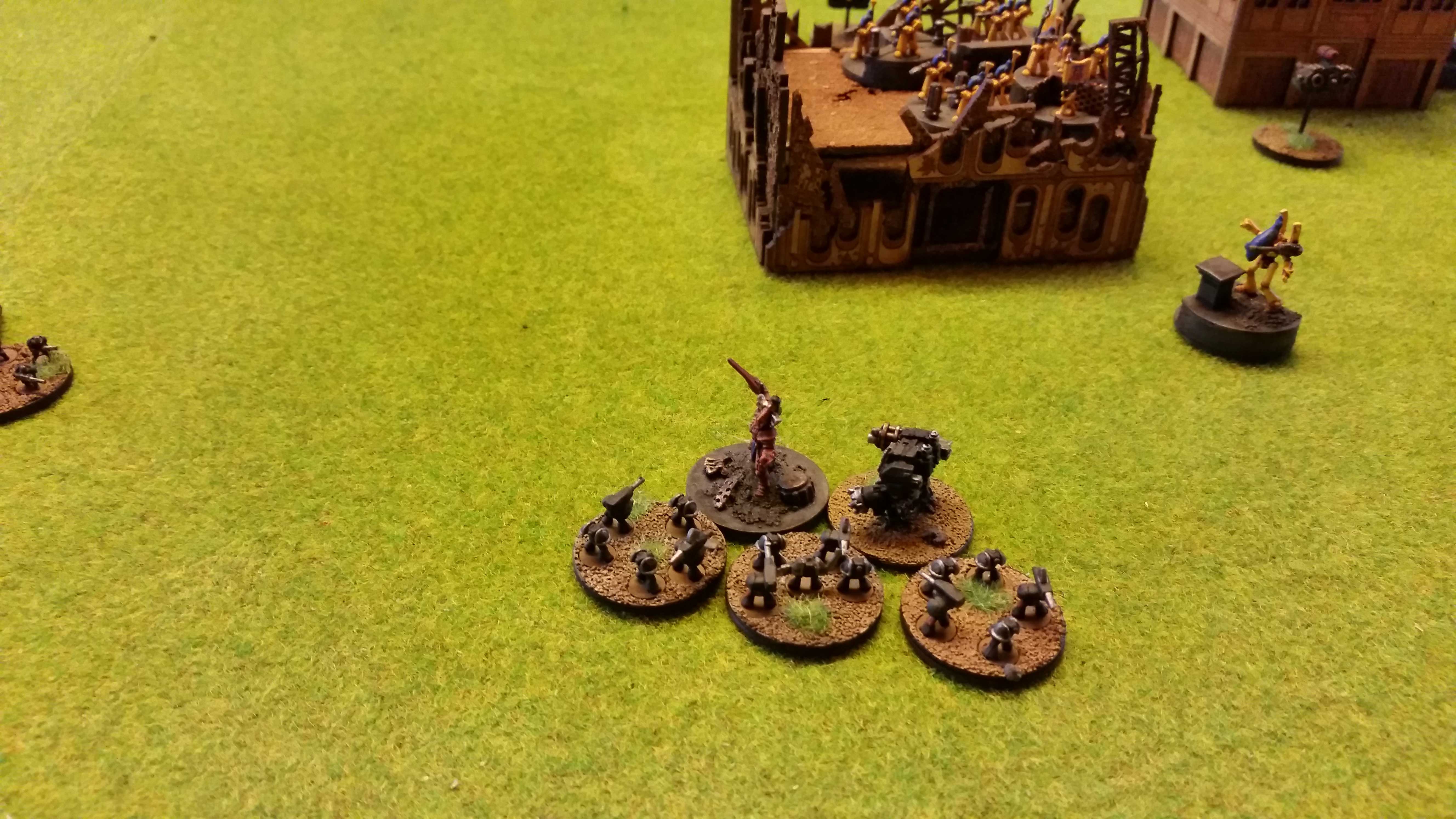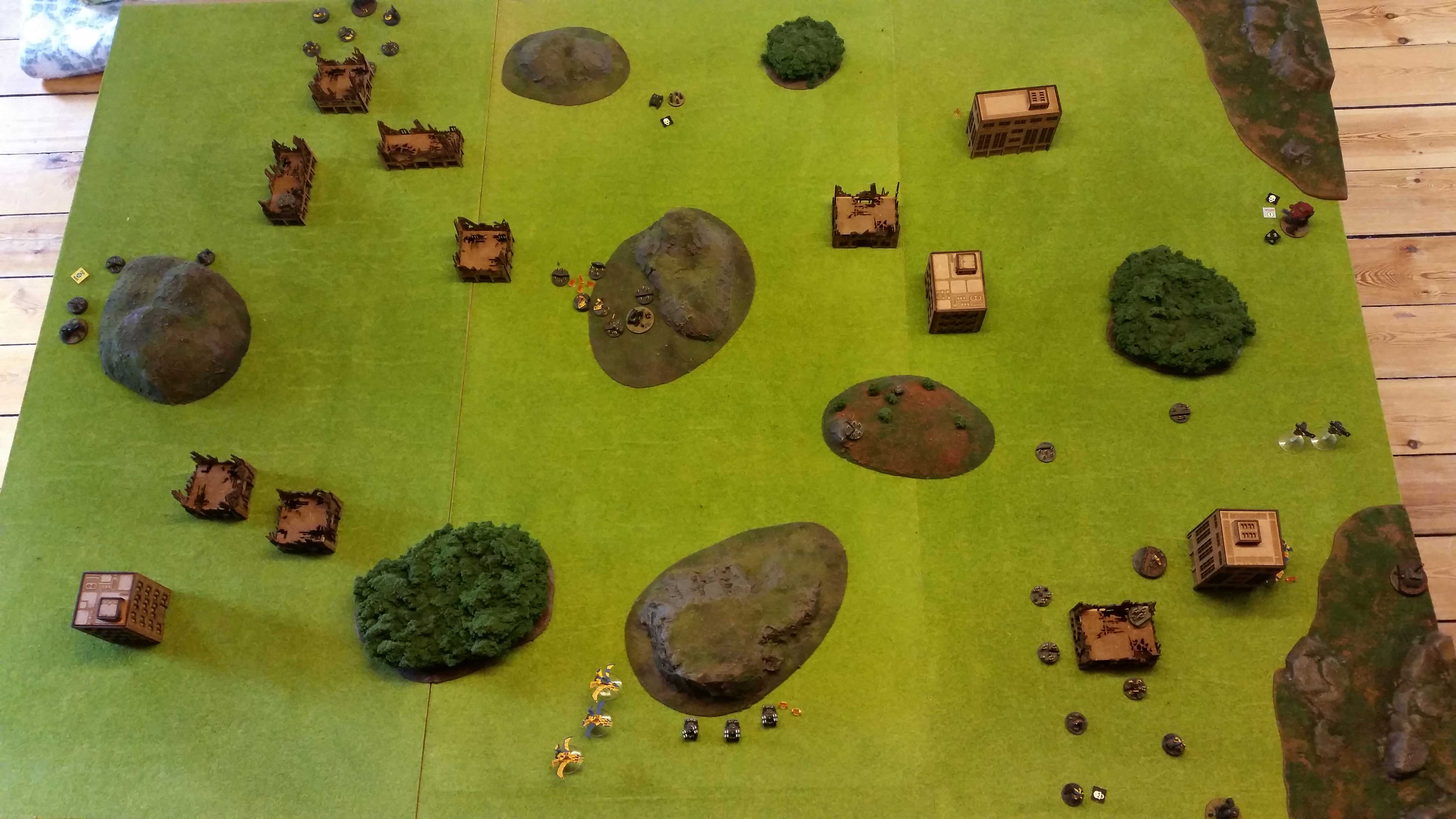 Scouts sustain on wraithguards in crossfire but armour and ruins saves them. 1 BM
