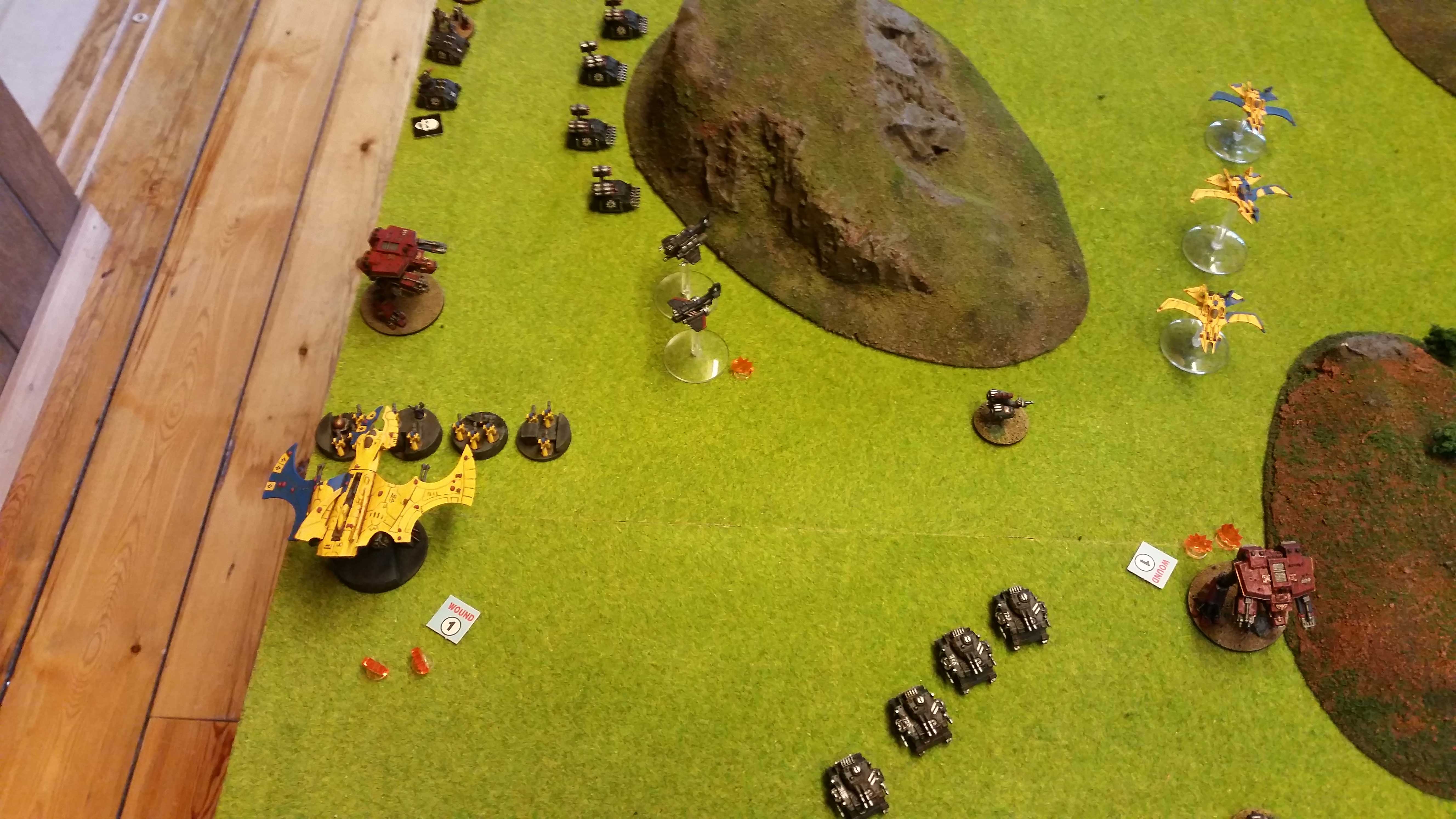 Vampire (SC used) air assault the other Warhound. Thunderbolts intercepts and does 1DC on the Vampire. Wraithguards manages a devastating 5 DC in the combat so no more warhound.