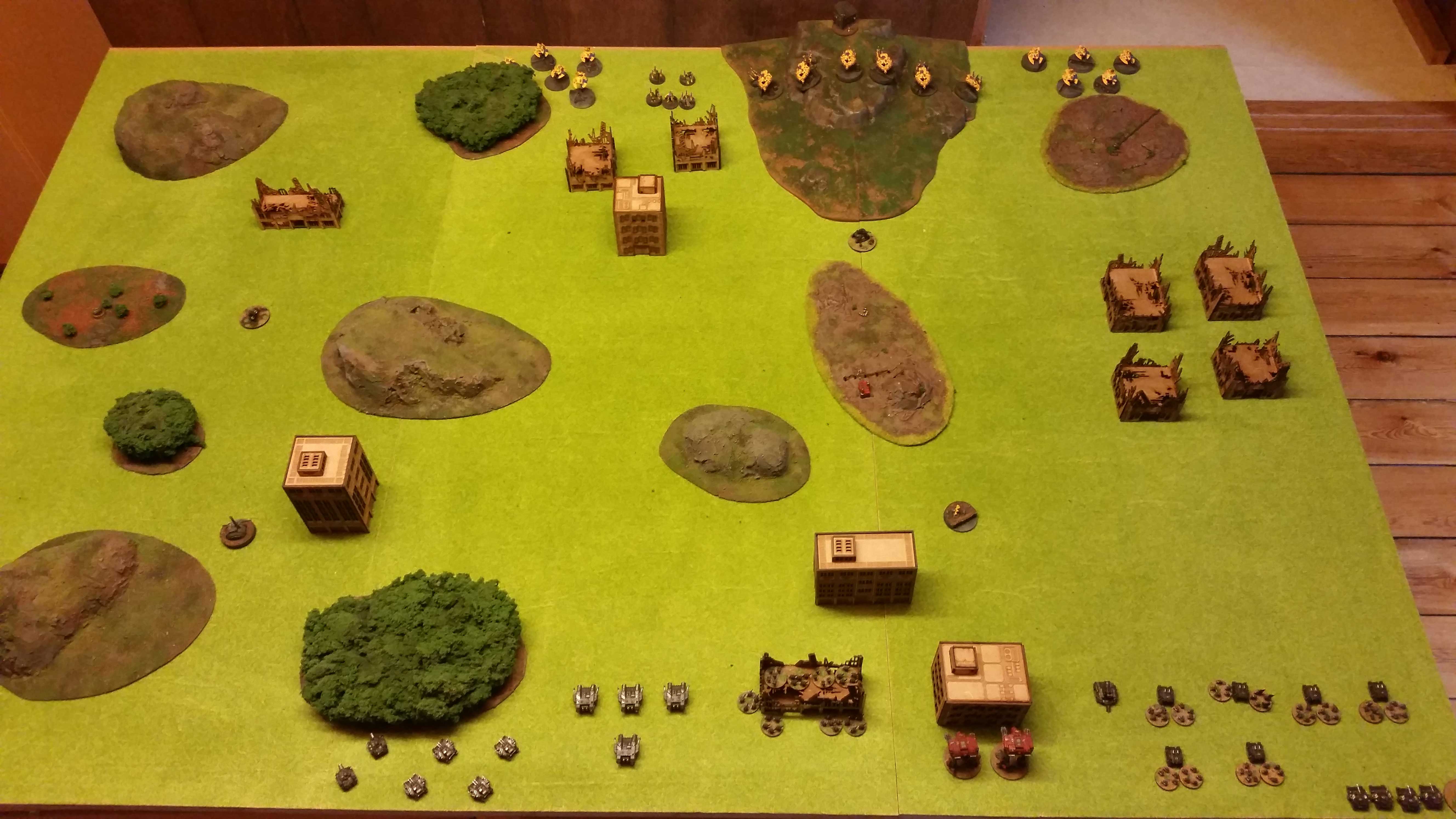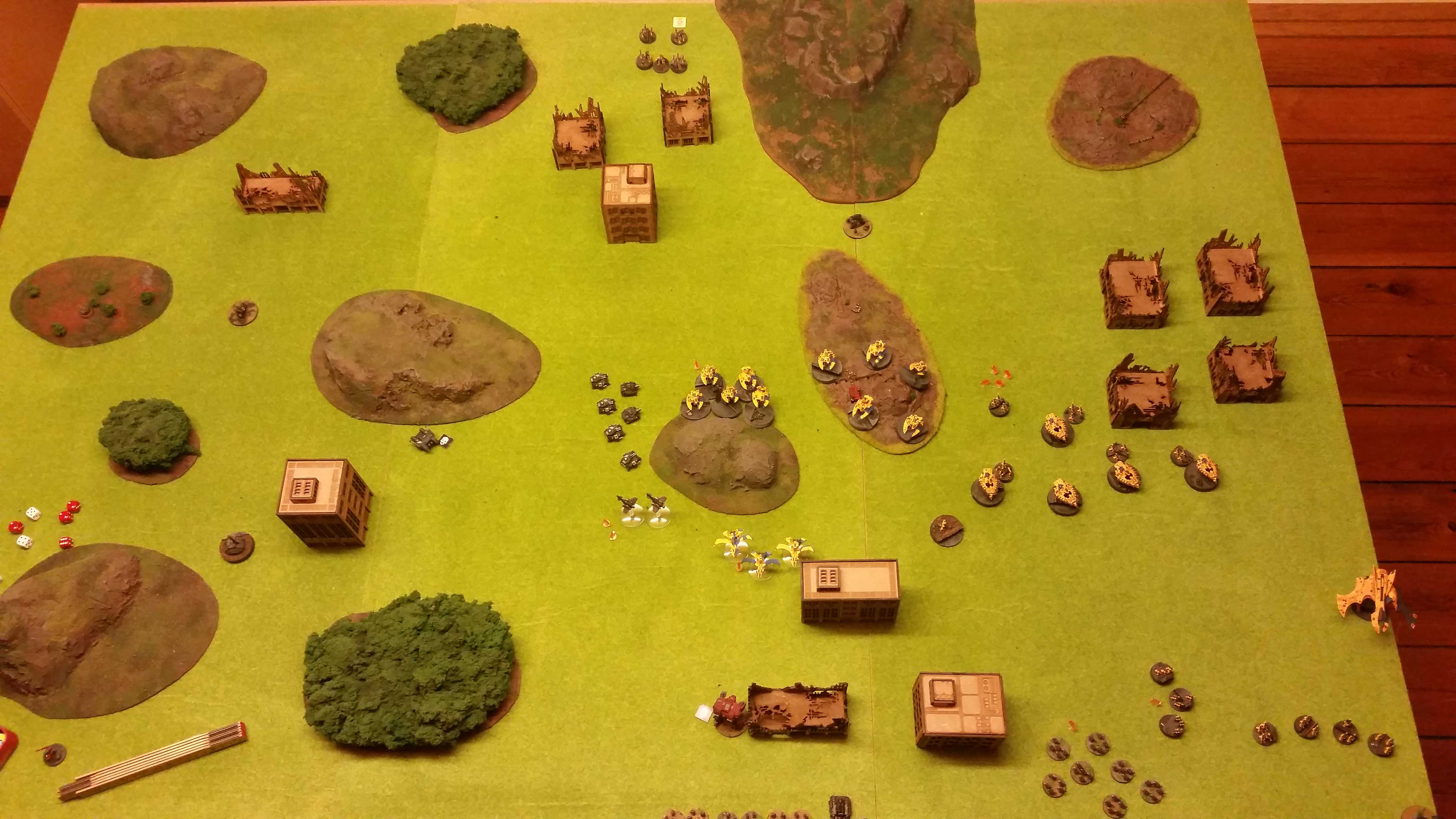 The damage output of a 4 man strong wraithguard unit is quite strong. 2 MW hits and 2-3 normal hits usually, that and the ability to move full speed to support another battle is really really good. This time I tried to max out on Wraithguards and still keep the mobility by using Vampires. Not sure this would have gone as good if the Hellblades would had gone on CAP before the attack or if the army had more AA. The ability to hover was also lifesaving a couple of times, that and the Landraiders poor shooting and later poor saves…