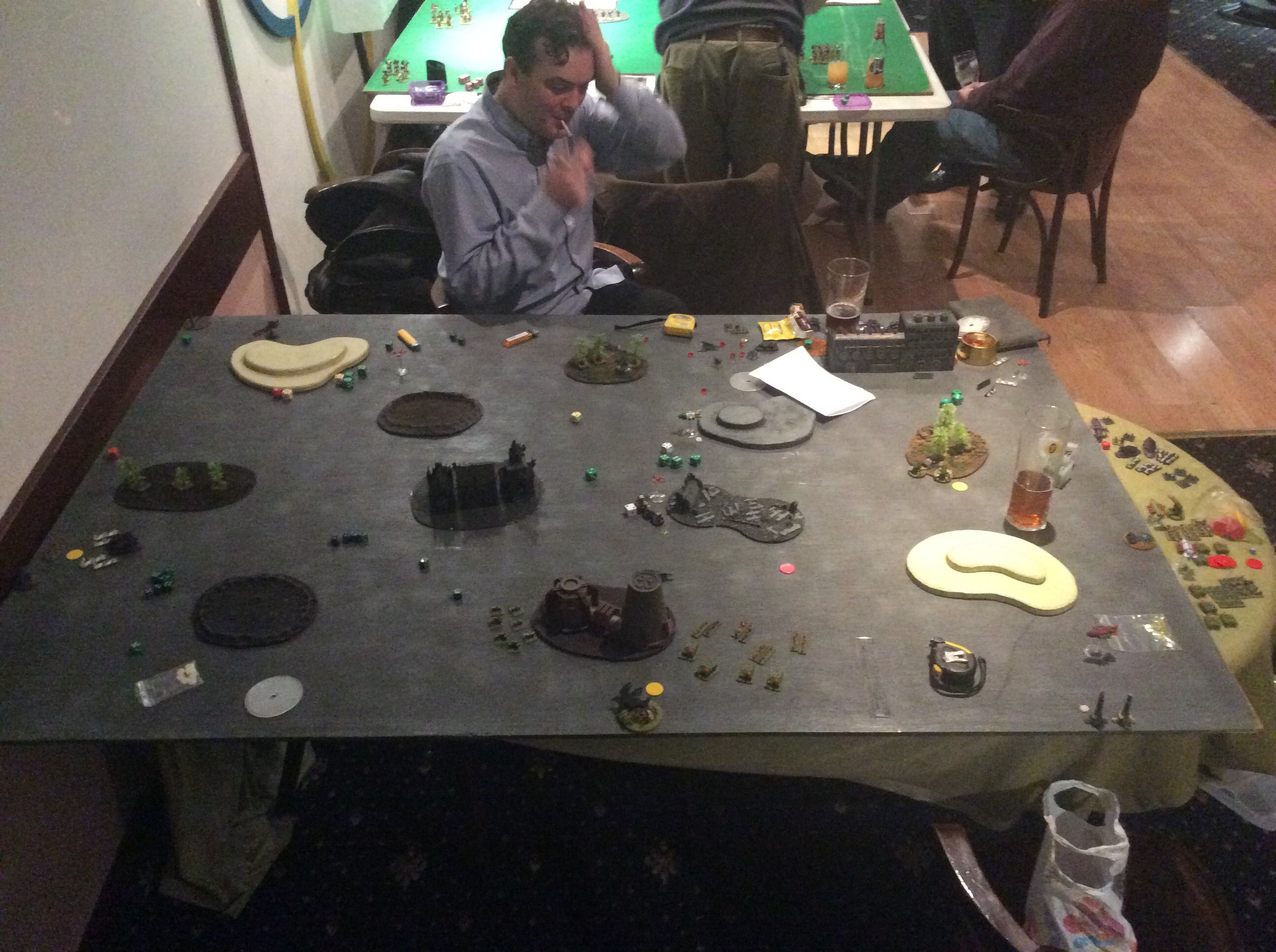 I took the nearest Epic UK version of the 5 overlord list at Cancon. Mark played as Dark Eldar (for the first time) we pulled Steve54s list from Wrath of the Tyrant last year to provide something all round but competitive. Also, I've only played against dark eldar once so a learning curve there.