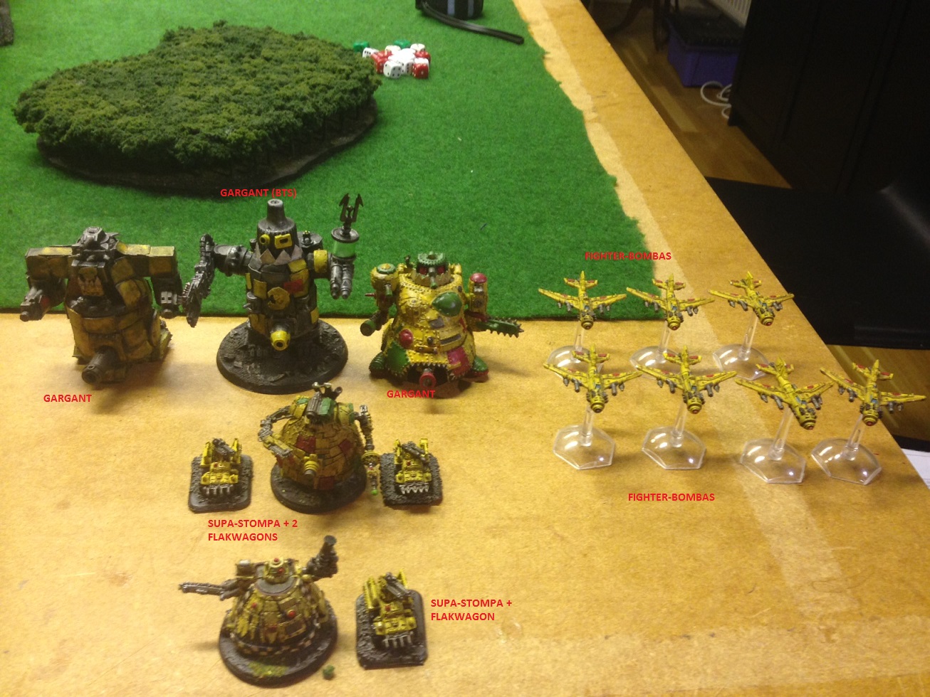 So, me and UvenLord decided to test out the Gargant list again! We played with the "flakka dakka" upgrade instead of the "wyrdboy tower" and played the boilers rule as causing crits.