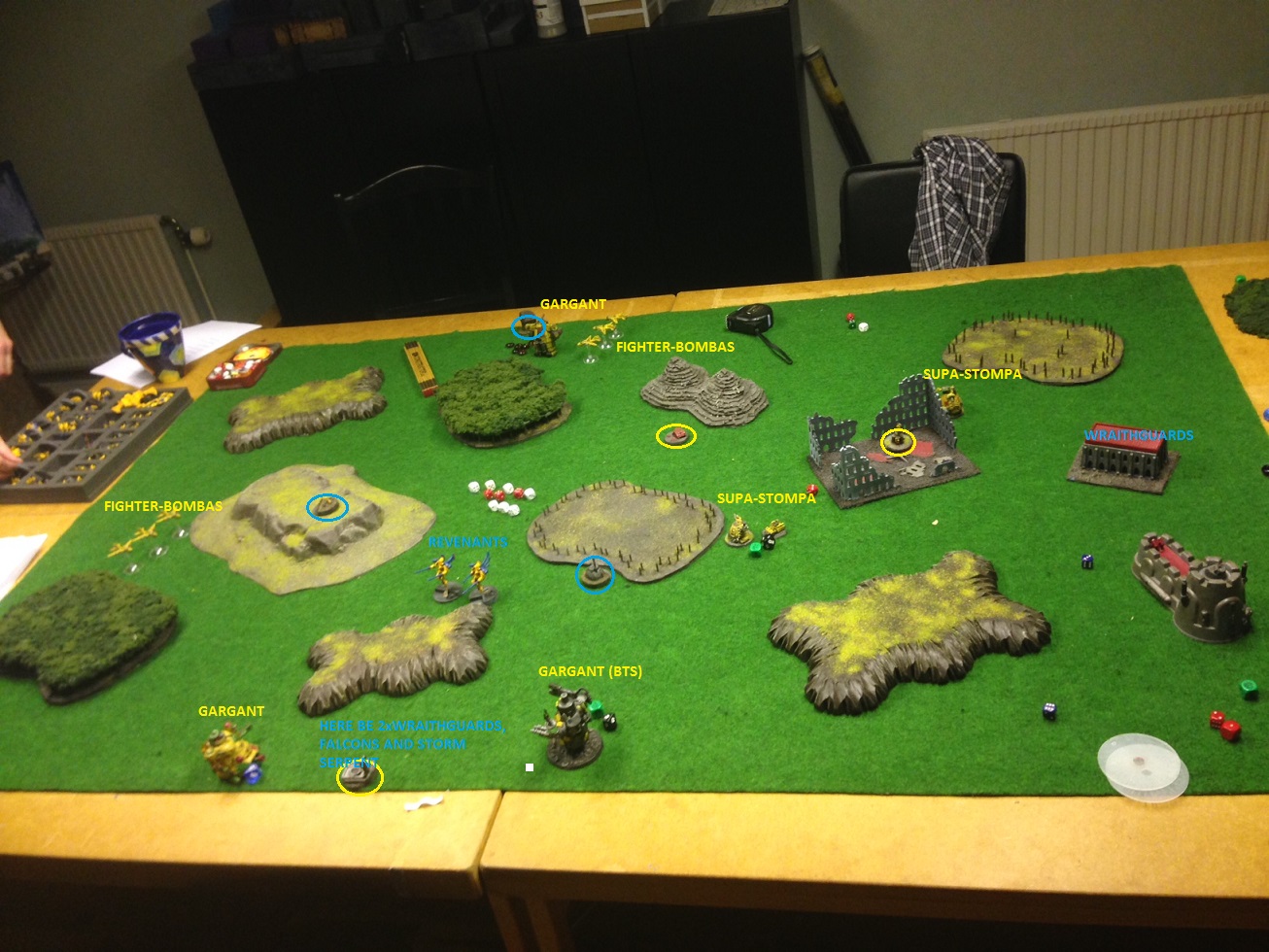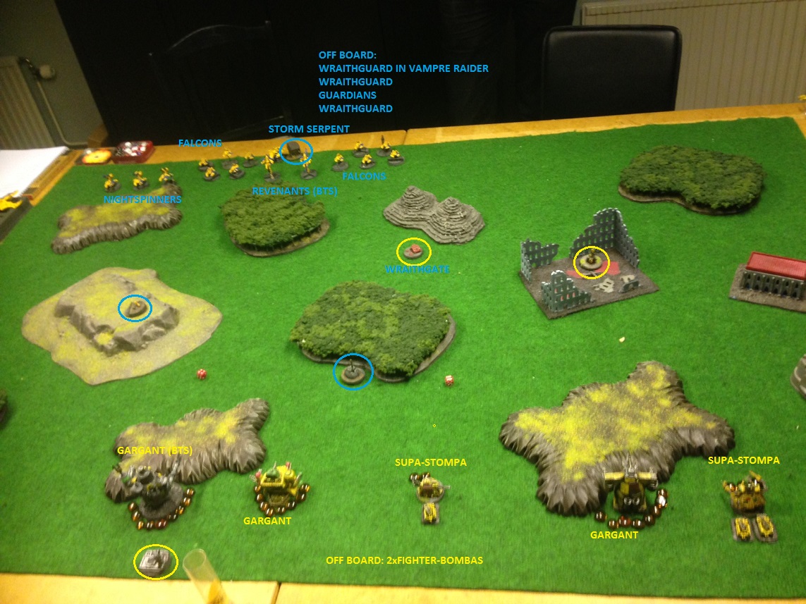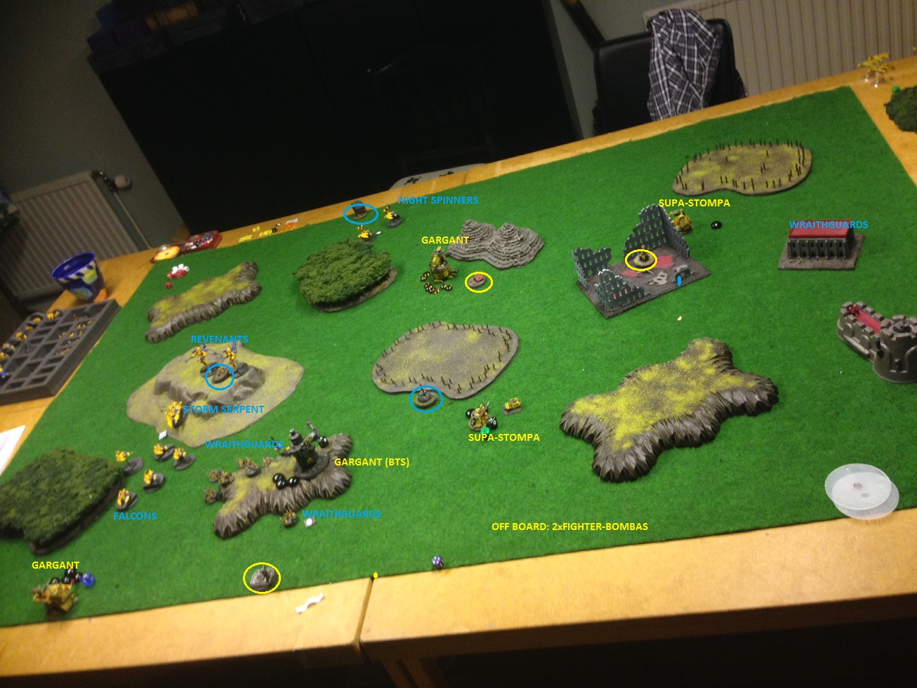 TURN 1: Iyanden wins initiative and elects to let the Gargants go first.