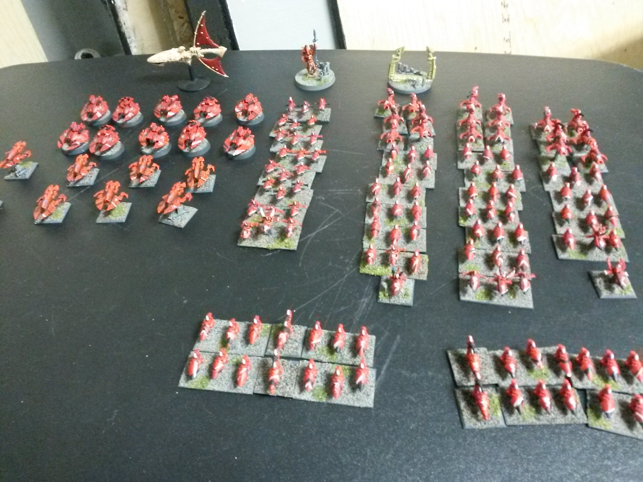 Eldar choose corner deployment Objectives deployed - Eldar: Blitz in corner, one on center line middle of board, one on center line farthest away from own Blitz - ATML: Blitz in middle of long table edge closest to Eldar corner, one on centerline in line with both Blitzs, other 30 cm from table edge and 30 cm from centerline (closest to 2nd objective and own Blitz) Eldar have Wraithship come in Turn 2 (a mistake I know, I was trying to be sneaky and failed) Eldar have Shinning Spears and Wild Rider BTS in Wriathgate