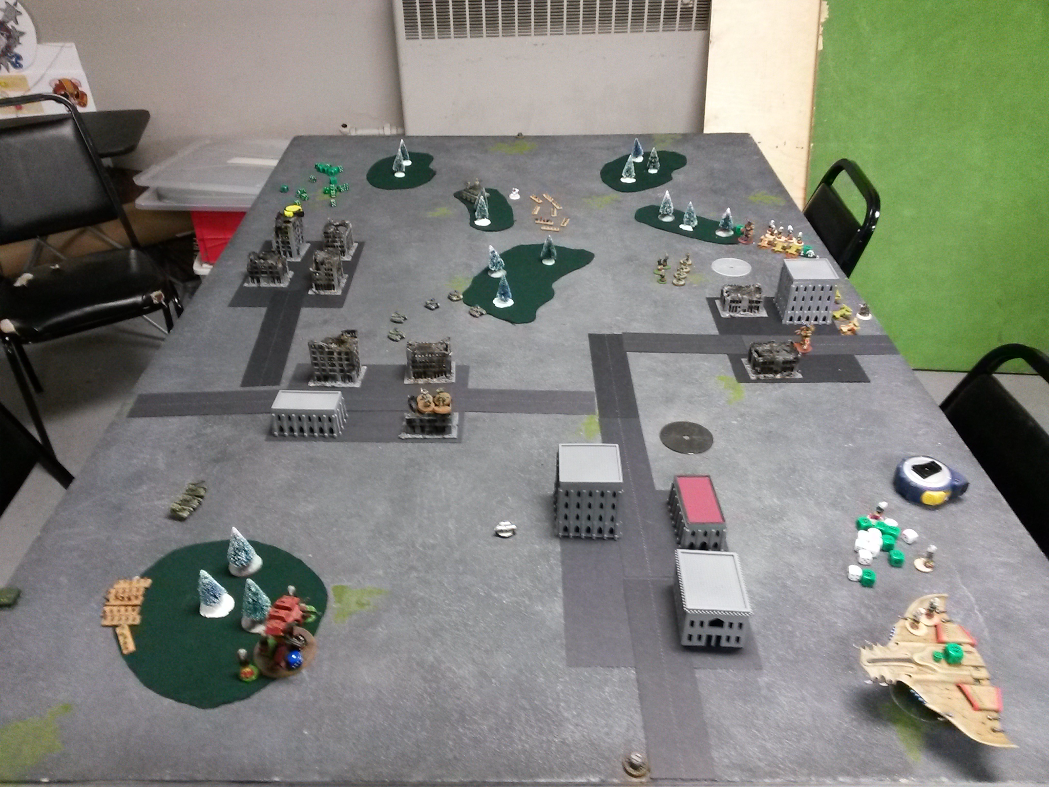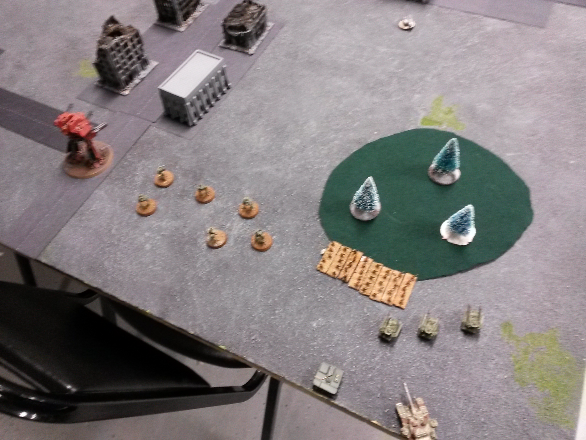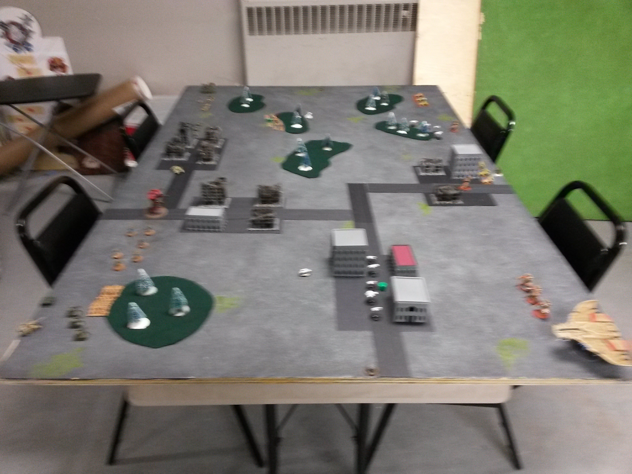 Was an interesting (though at times frustrating) game but certainly fun regardless. I made a list mistake (as I somehow forgot to bring all my rules and list) intending to try out the stormsurges and an extra recon formation in place of the Riptides, got it a little mixed up when trying to recreate from memory (Hence the 100 extra points).