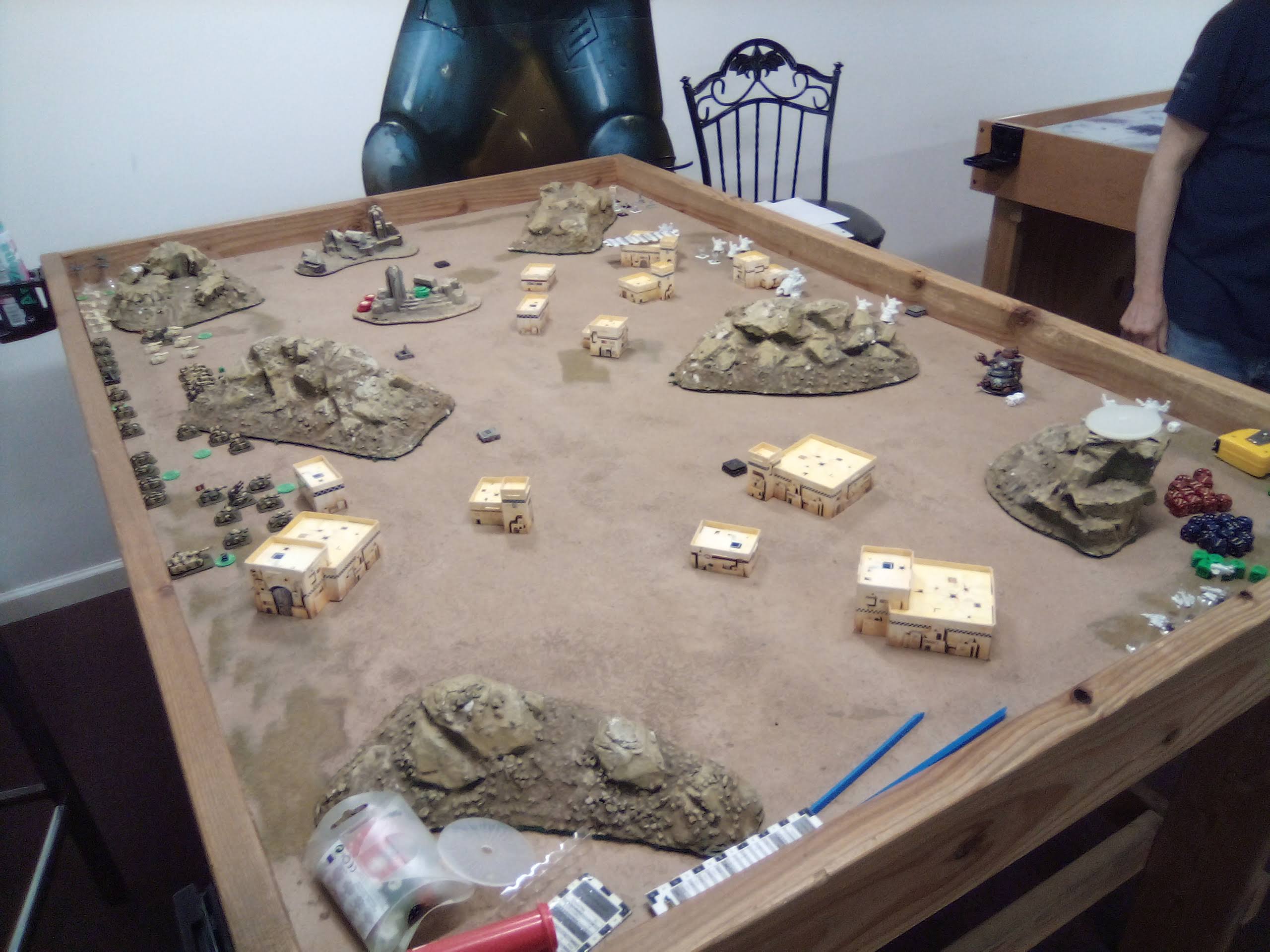 The Guard's left managed a much better time, breaking both Stompas and the Supa. The Kans took out a Vulture that doubled up and the Salamanders started sneaking towards crossfires and Blitz.