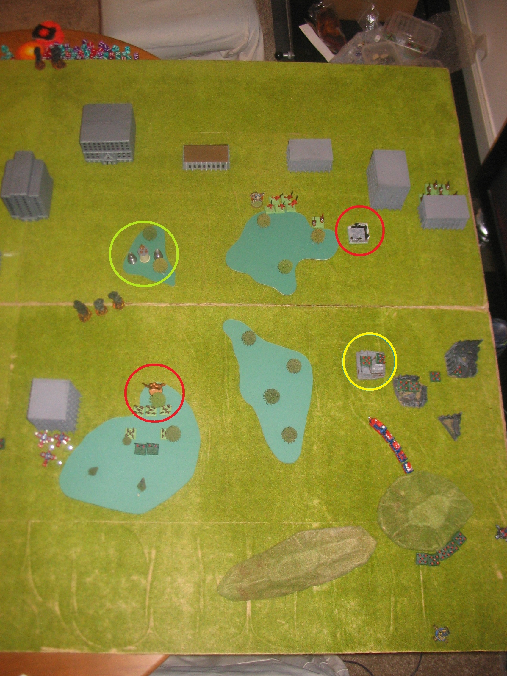 Note: Red signifies objective under Khorne control, yellow under Squat Control, green means the objective hasn't been captured yet.