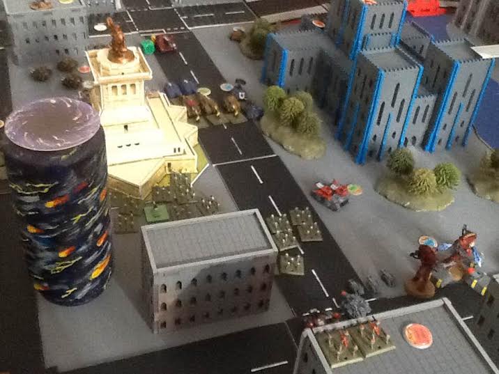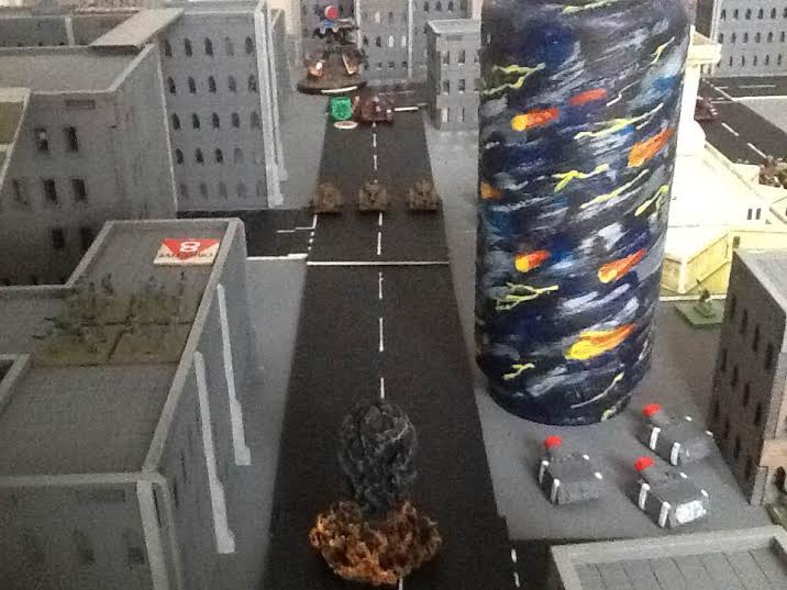 The vortex moves! Unfortunately for the Ad Mech it moves towards the monument, destroying it and slaying more Assault units, breaking the company! (Note we only remembered about this early on in Turn 3, pics shown below)