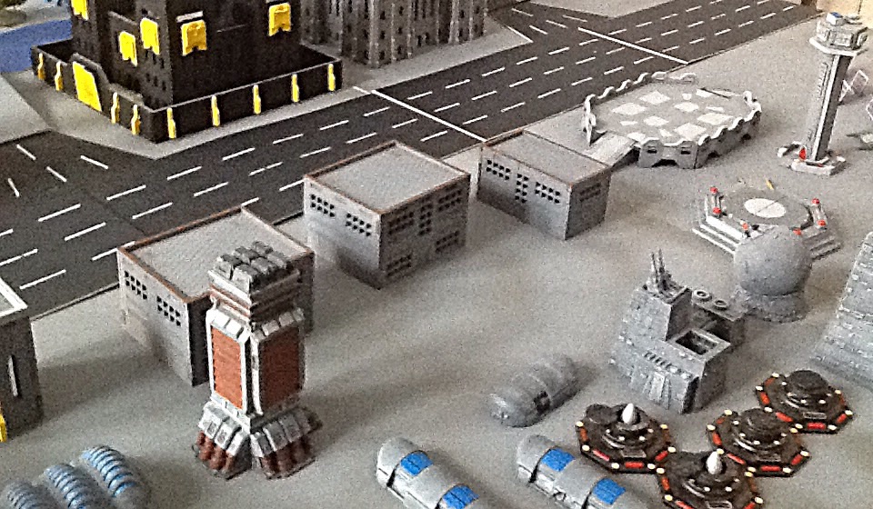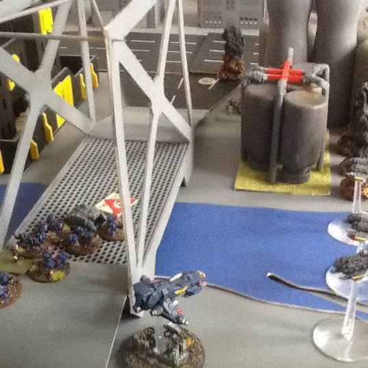 on the far left flank Tech Guard infantry and Marine landspeeders would charge forward and grab objectives from the close quarters layout of the space port and planetary defences.