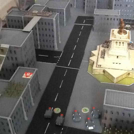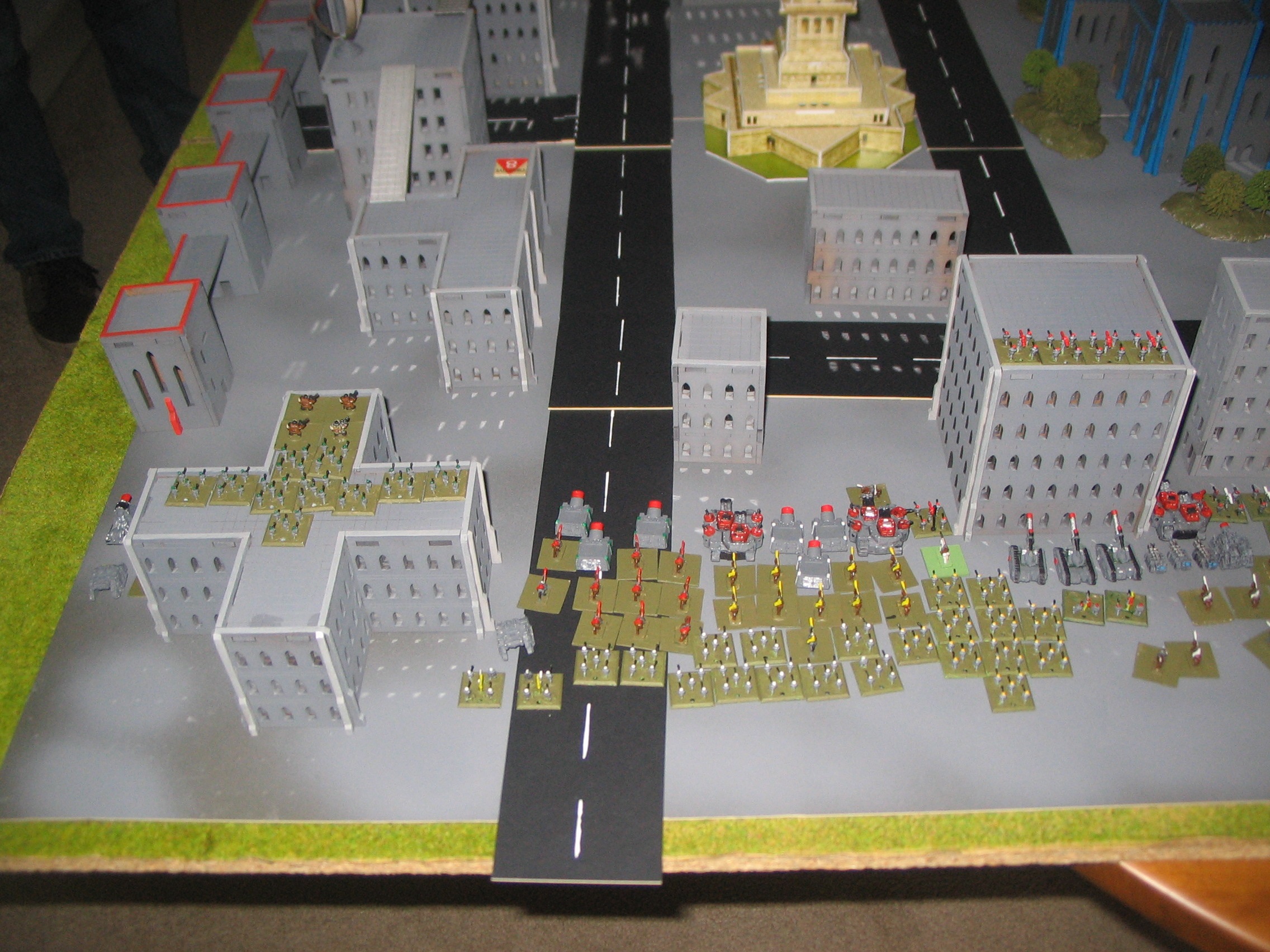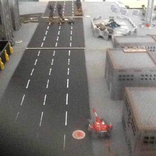 On the right hand side of the Highway Devestator Marines and Heavy Tech Guard would infiltrate buildings, take objectives and provide fire support, the hell hounds would flush out any infantry coming from the other side thinking of doing the same!