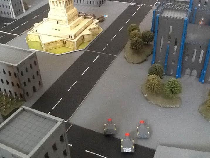in the middle of the highway was my armoured fist, 2 squads of leman russ, a mech assault detachment and the last stormblade, a titan armed with a Quake Canon and AAA would support this push up the main road.