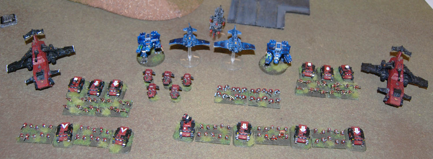 Vanaheim, my that's a lot of skimmers! This was a game that could have gone badly but I think Chris moved forward a bit too aggressively on turn one and allowed the nids to swarm in and smash formations at will in turn 2 and 3. A very bloody game that saw the nids edge it 2-0 in 3 turns.