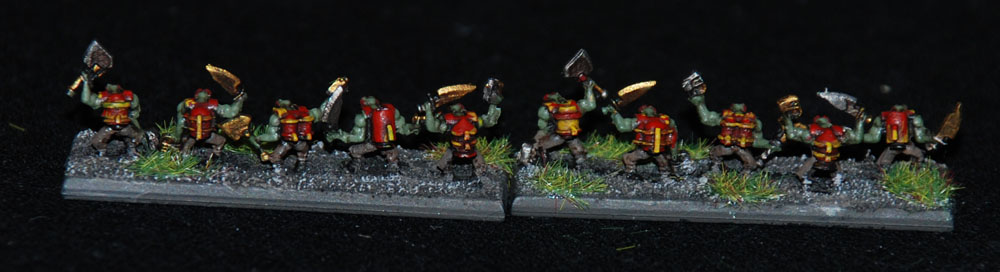 This large Goff Warband follows their lesser ‘Boss Gutmuncha to war, and for the most part do not care for the rivalry between their own Goff ‘Boss and the Bad Moon chief Warboss - Just as long as someone is leading them towards some good fightin’ then “Da Boyz” will be happy! “Da Boyz” carry a mixture of Shootas and Choppas, so that whatever the situation, they can be sure of getting some killin’ done, or at least making a lot of noise...