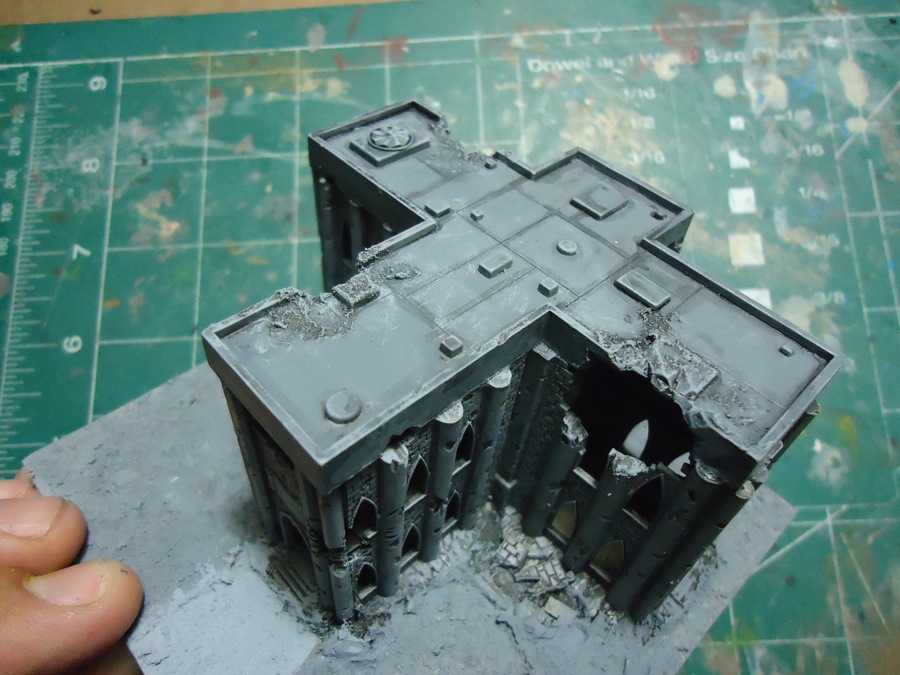 File comment: Final steps , I mounted building to a plasticard base, and concrete patch was used for the ground and some on the roof for debris. see next photo #2