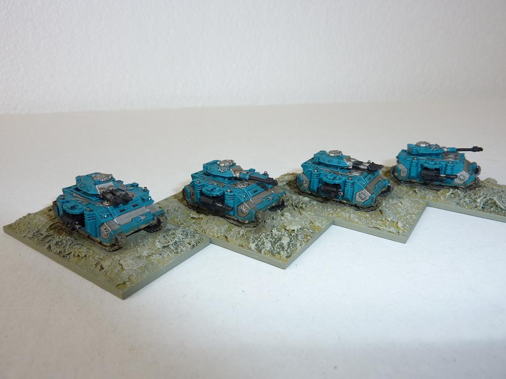 Vehicles use same GW turquoise base colour, then i did the chainmail panels and gunmetal tracks. The tanks where then shaded with army painter dark tone. Then the original base colour was used to highlight the sharp edges and the odd detail here and there. (not that visible in the pics)