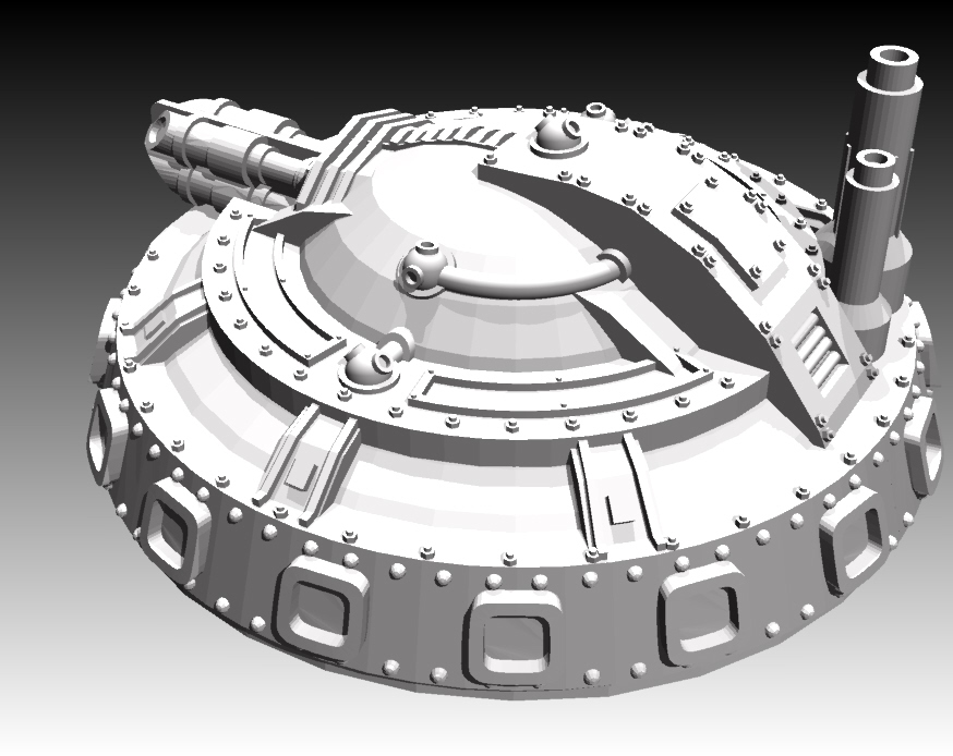 The Martian Flying Machine itself is a nice model but looks more like a land bound bastion/emplacement than a flying contraption. Also, IMHO, I cannot begin to say why but it just doesn't seem to match the aesthetics of the tripods (except for the weapon system)... Maybe some ability to see what provides the lift/flight capability when looking at the model from above or the side? Maybe a few sharper edges like those seen on the tripod legs?