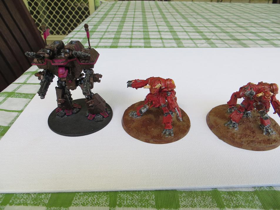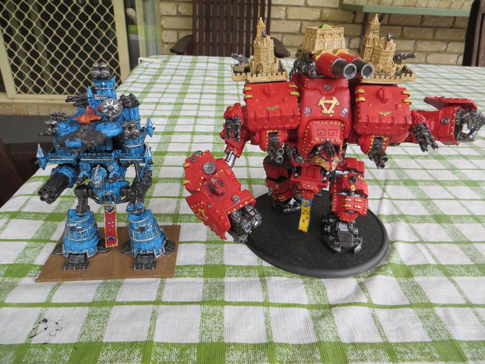 Finished -Two Imperial Hunters warlord titans. One with standard weapons configuration and the other with a different weapons mix.