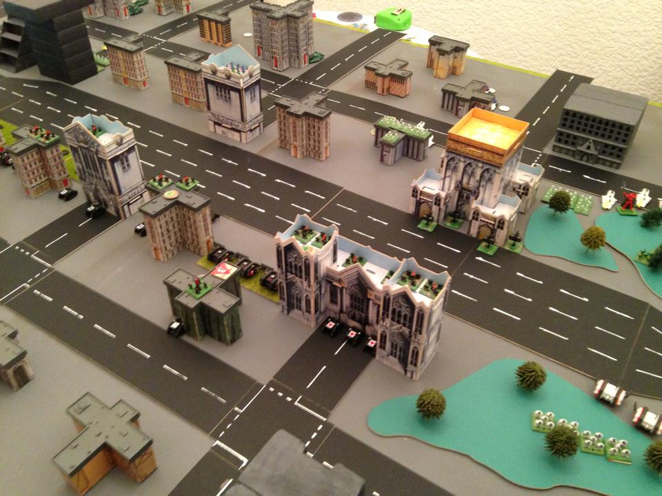 The freeway firefight continues and the casualties on both sides slowly mount up. With some units in reserve still to fire, the Marines focus all of their remaining firepower upon a lone Tempest who has had the temerity to instigate a pop-up attack. Several volleys of rockets light up the sky around the Tempest. The superheavy soaks up an unbelievable amount of firepower, its thick hull protecting it against the wrath of the Devastators. But one last rocket pierces the armour and the vehicle is blown apart, signalling another significant victory for the Imperium. The Eldar can only respond by breaking a lone JetBike. Their Warhost hanging by a thread, the Eldar avoid an overwhelming defeat and hang on for another turn...